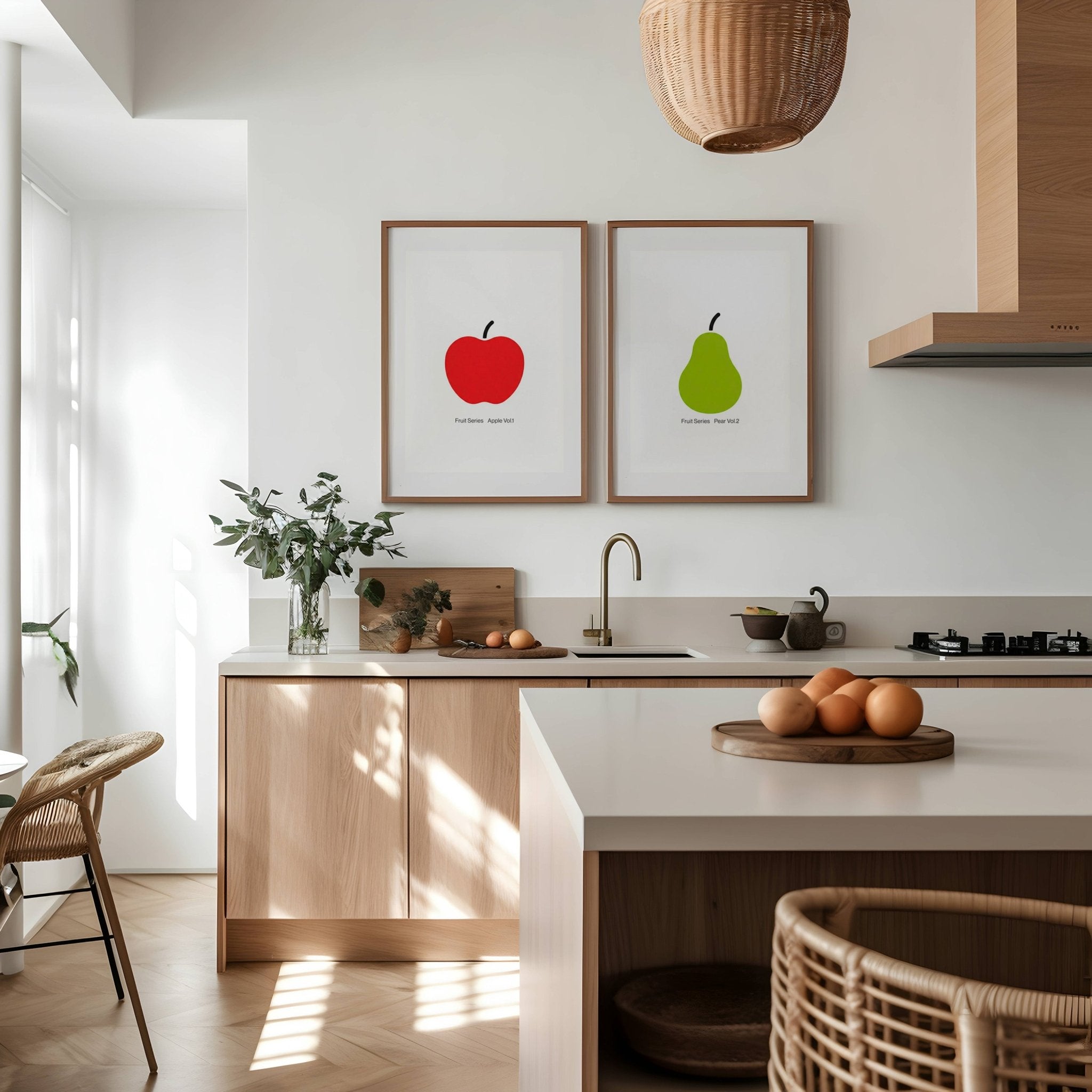 Introduce a touch of nature into your home with our Apple & Pear Fruit Series Vol.1 Wall Art Pair. This set of two minimalist prints features beautifully detailed apple and pear designs, adding a subtle and elegant touch to any room. Elevate your decor with this matching pair of wall art pieces.