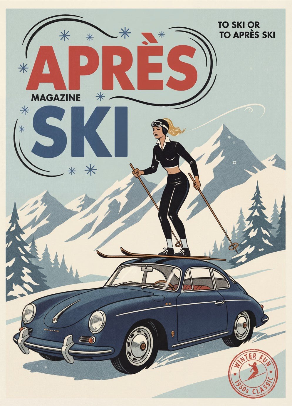Elevate your space with the Apres Ski Magazine Vintage Retro Poster Print, a stylish nod to classic winter leisure. This sophisticated artwork brings a timeless charm to any living room, kitchen, or bedroom, blending vintage appeal with modern decor. Perfect for those who appreciate refined design and a touch of nostalgic fun.