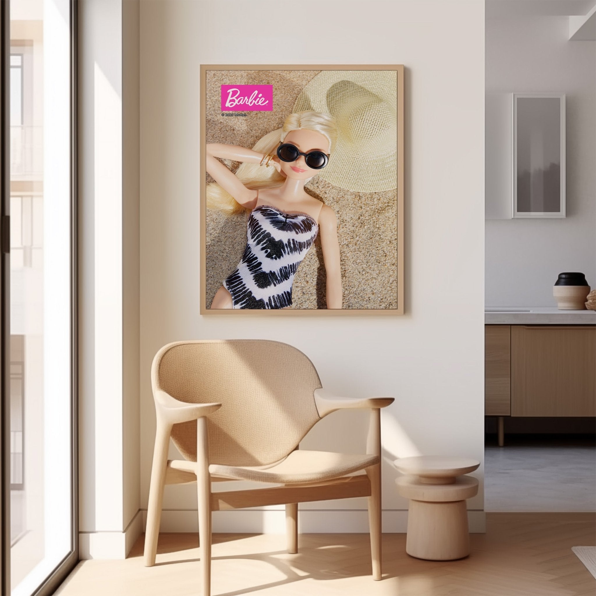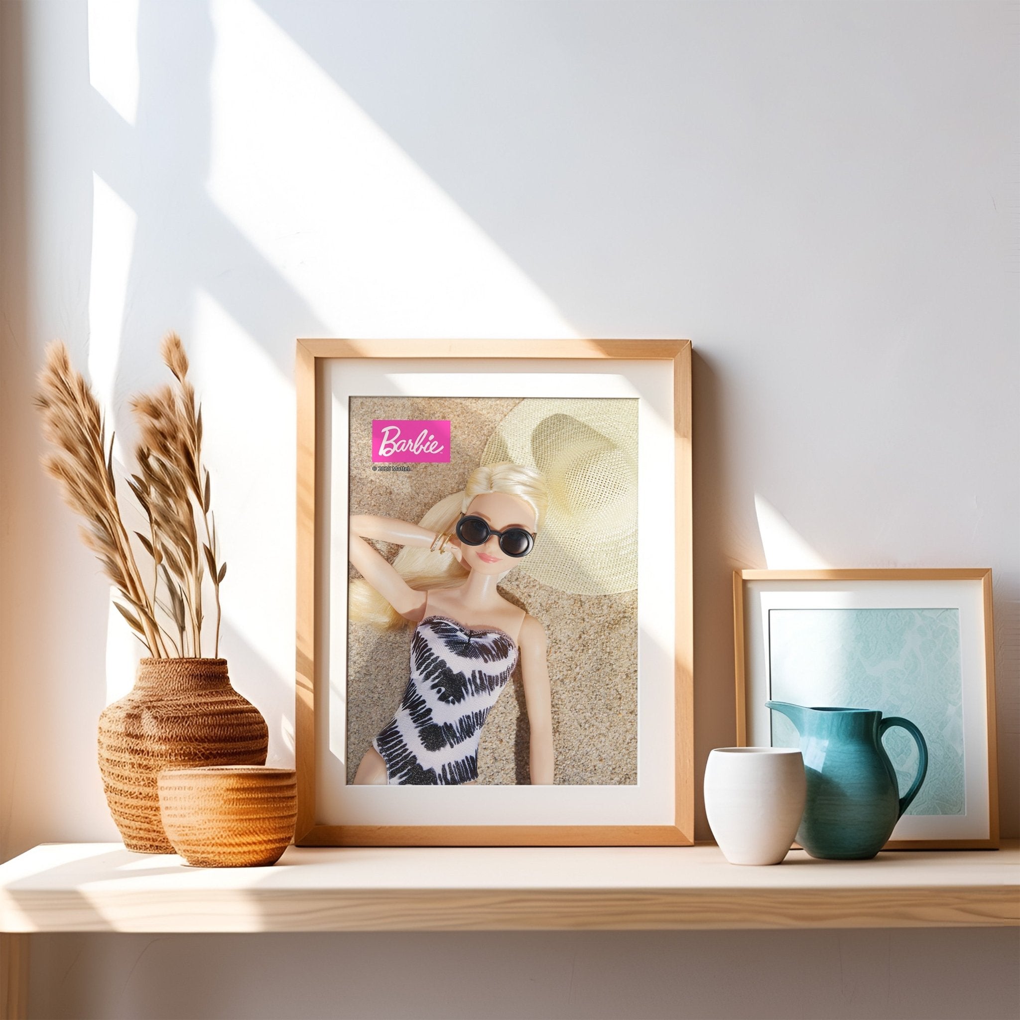 Bring summer vibes to any room with the Barbie Beach Break Print. This playful design captures Barbie enjoying a relaxing day at the beach, perfect for teens and fans who love a touch of sunshine. Its neutral colors blend effortlessly with any décor, making it a versatile and fun addition to your space.