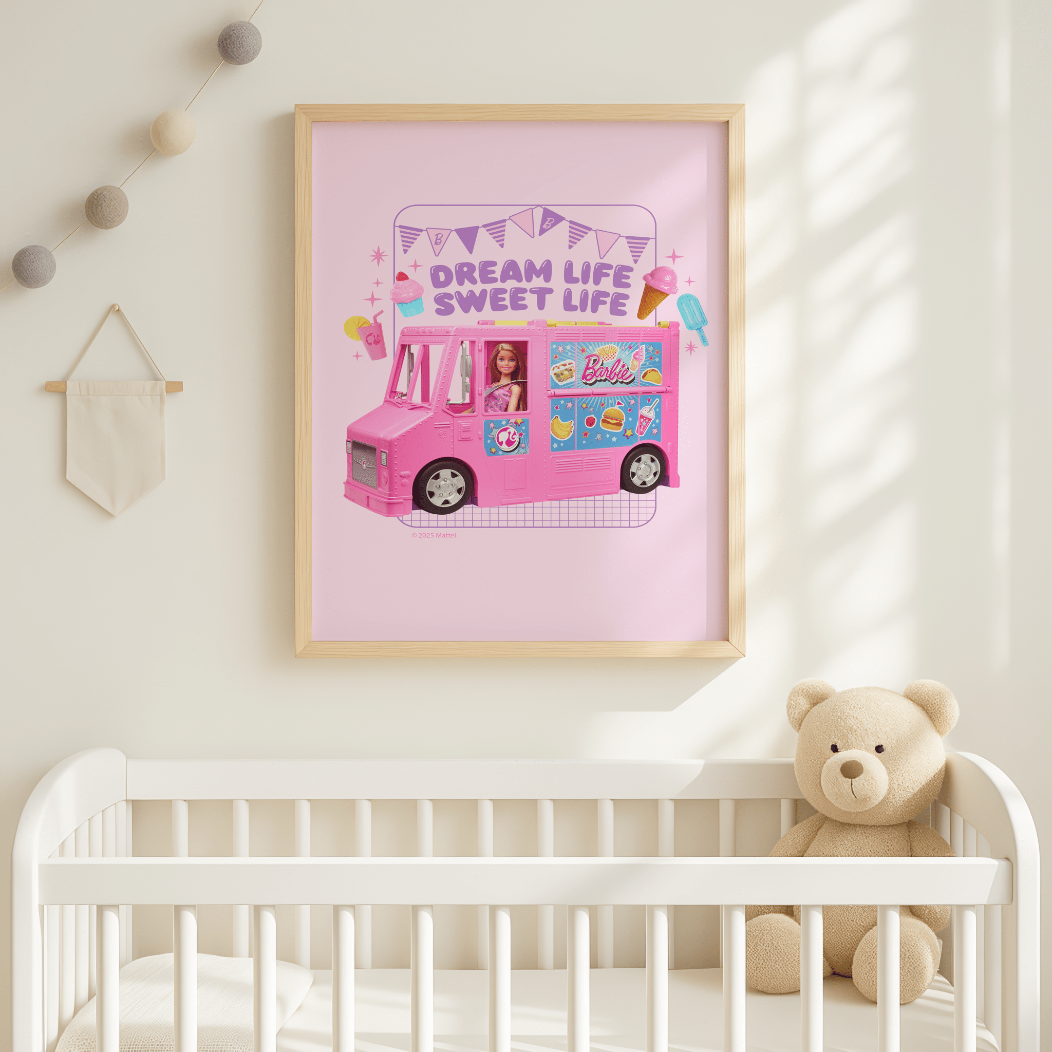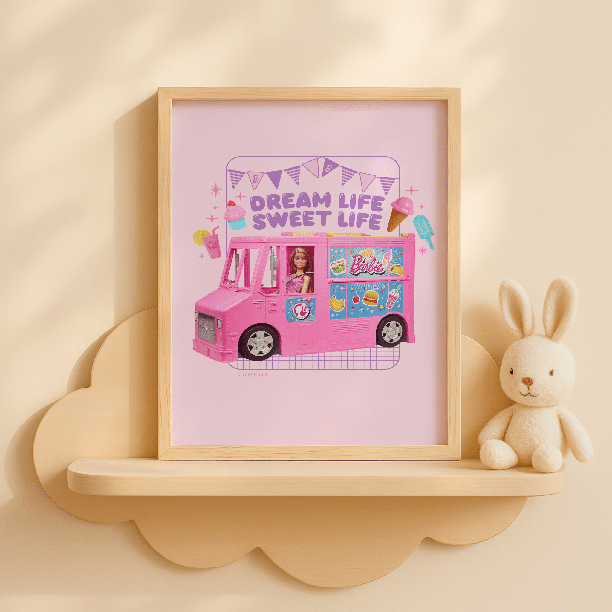 Bring playful charm to your living room, kitchen, or bedroom with the Barbie Dream Life Sweet Life Print. This fun poster captures Barbie’s bright and cheerful spirit, adding a sweet and lively touch that brightens any space with joyful energy. Shop the Mattel range today!