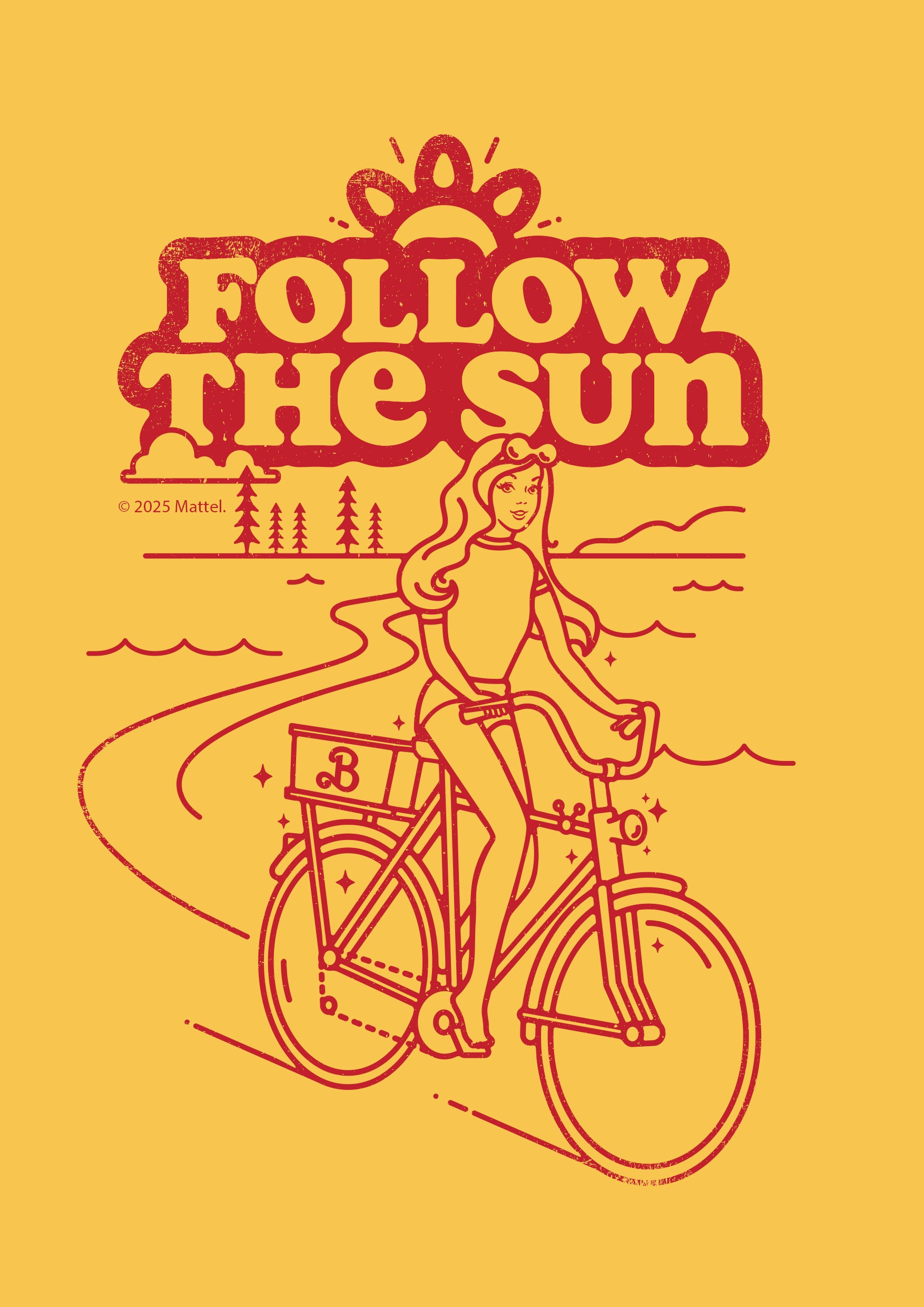 The Barbie Follow The Sun Retro Wall Art Print is a charming vintage-inspired illustration that captures the essence of summer warmth. Featuring grunge accents and bold red-on-yellow colors, it’s perfect for brightening cafes, hallways, or any space that could use a cheerful, feel-good touch.