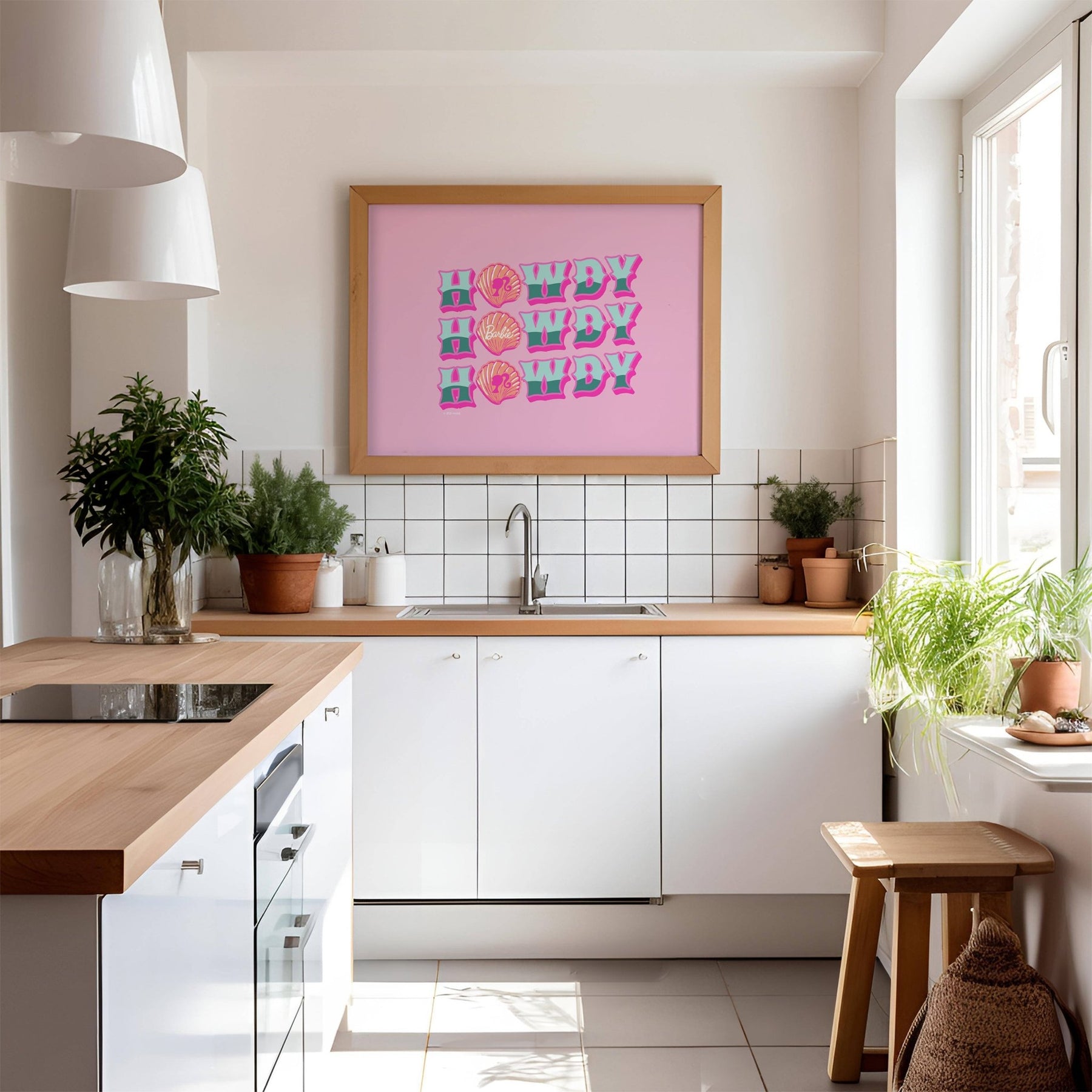 Bring a playful coastal vibe to your living room, kitchen, or bedroom with the Barbie Howdy Coastal Seashells Landscape Print. This fun poster blends vibrant colors and seaside charm, creating a cheerful and refreshing atmosphere that brightens any space. Perfect for adding a splash of beachy joy to your walls.