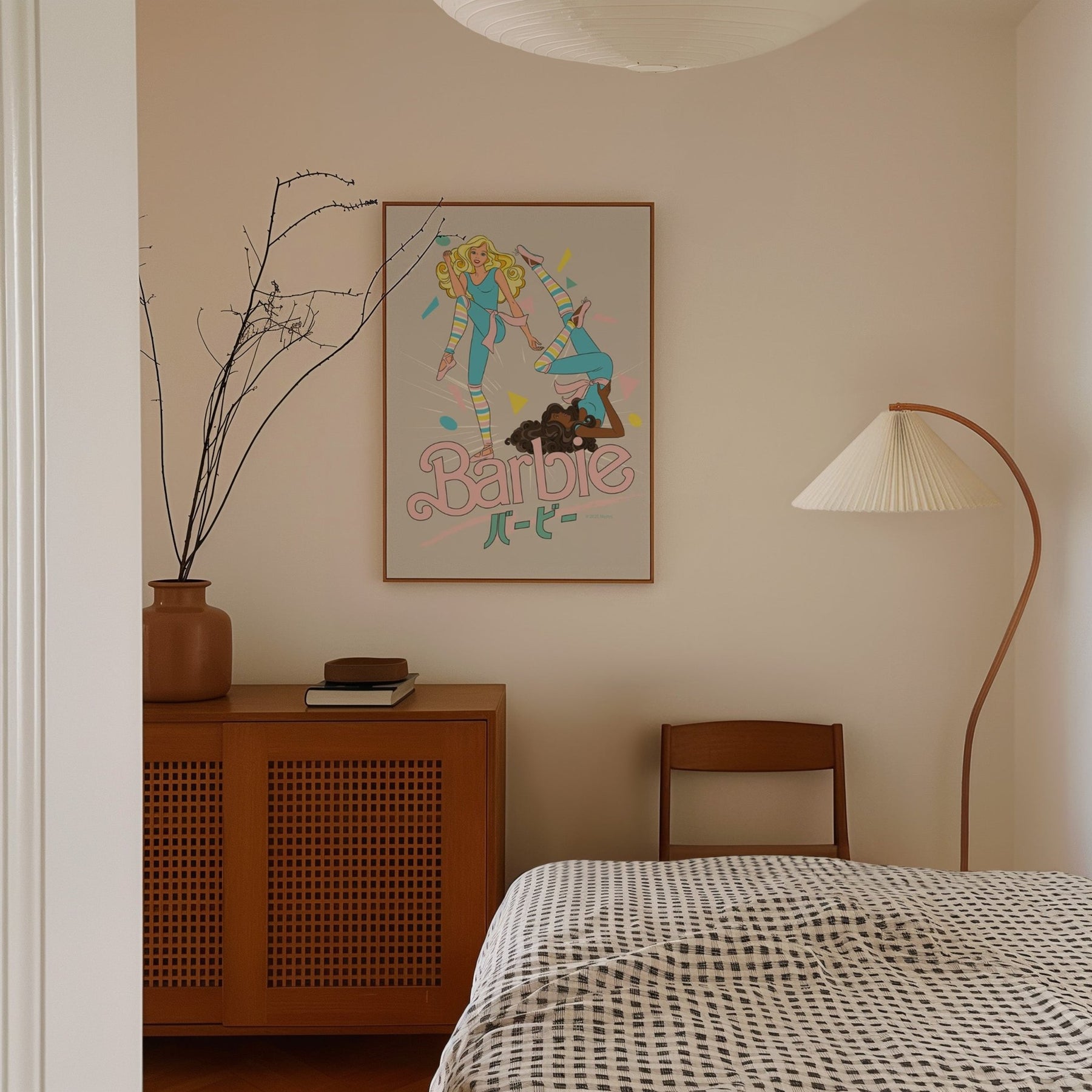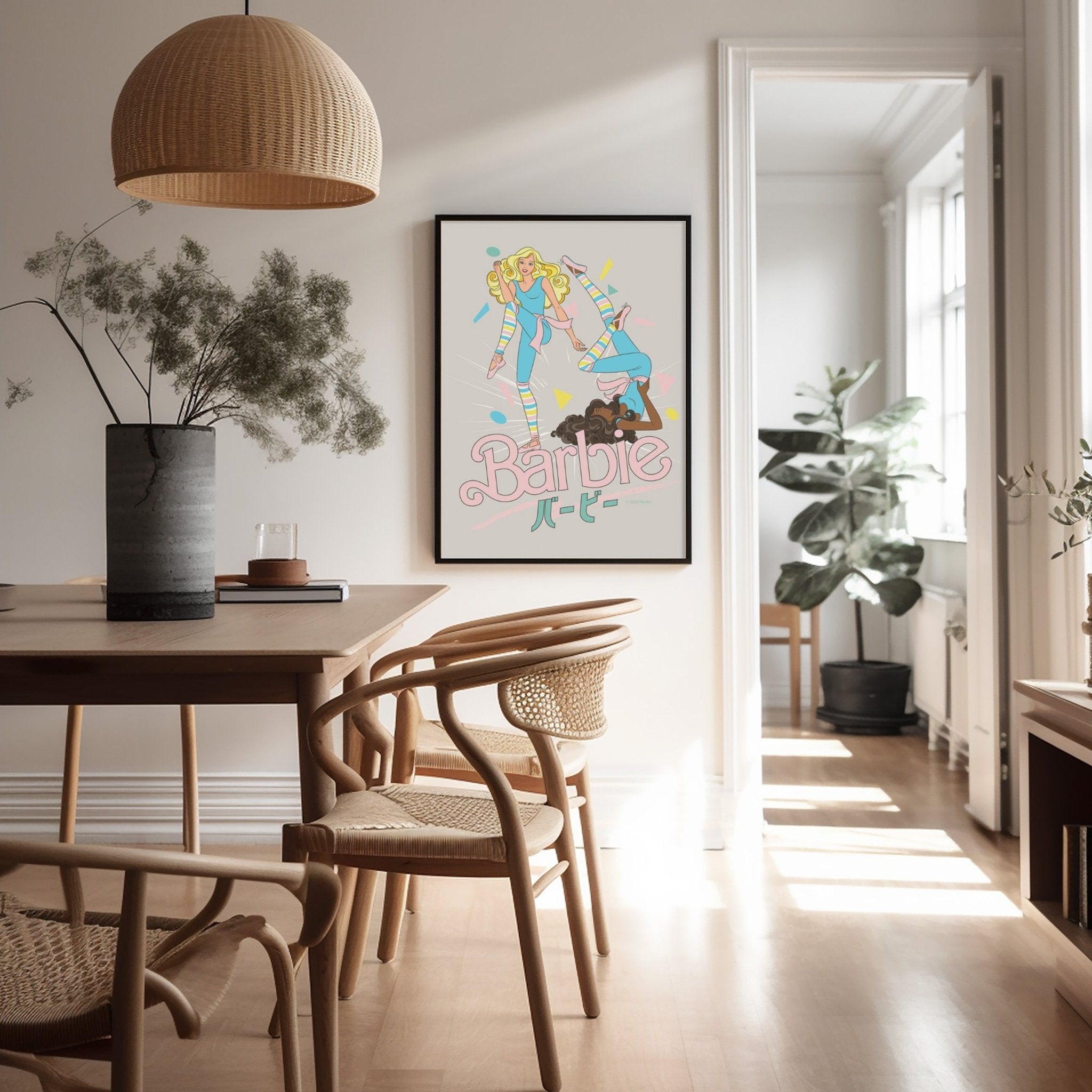 Celebrate lively charm with the Barbie Japanese Retro Vintage Dancing Print. This fun and playful poster brings a nostalgic dance vibe to your living room, kitchen, or bedroom, adding a unique touch of vintage style and joyful energy to your décor.