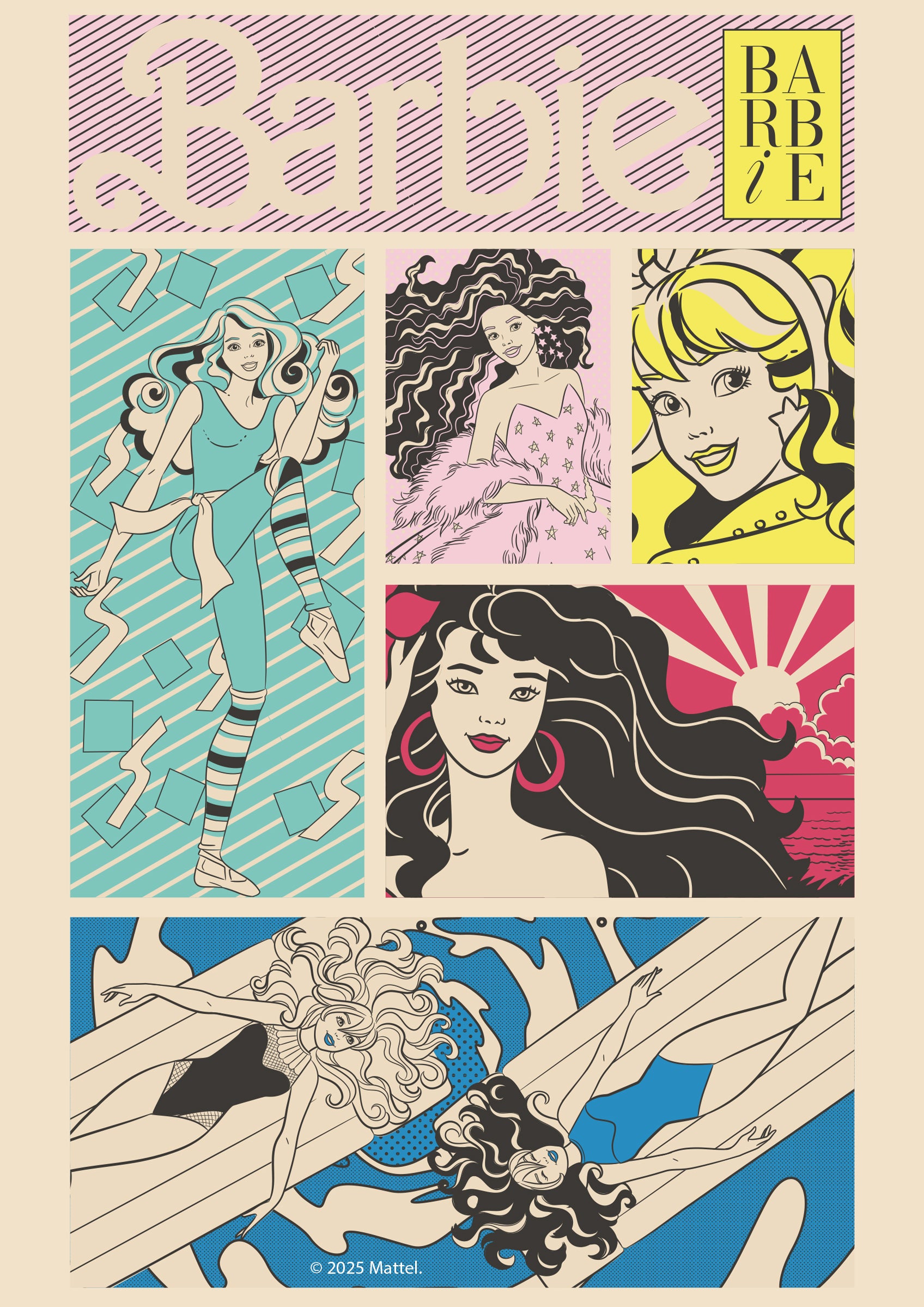 Celebrate Barbie’s timeless style with this bold and vibrant Barbie Retro Comic Art Print. Featuring a collage of iconic Barbie illustrations in playful pop-art colors, this print captures the fun, fashion, and confidence that Barbie has inspired for decades. From poolside lounging to sun-kissed hair flips, every panel bursts with vintage charm and 80s–90s nostalgia.