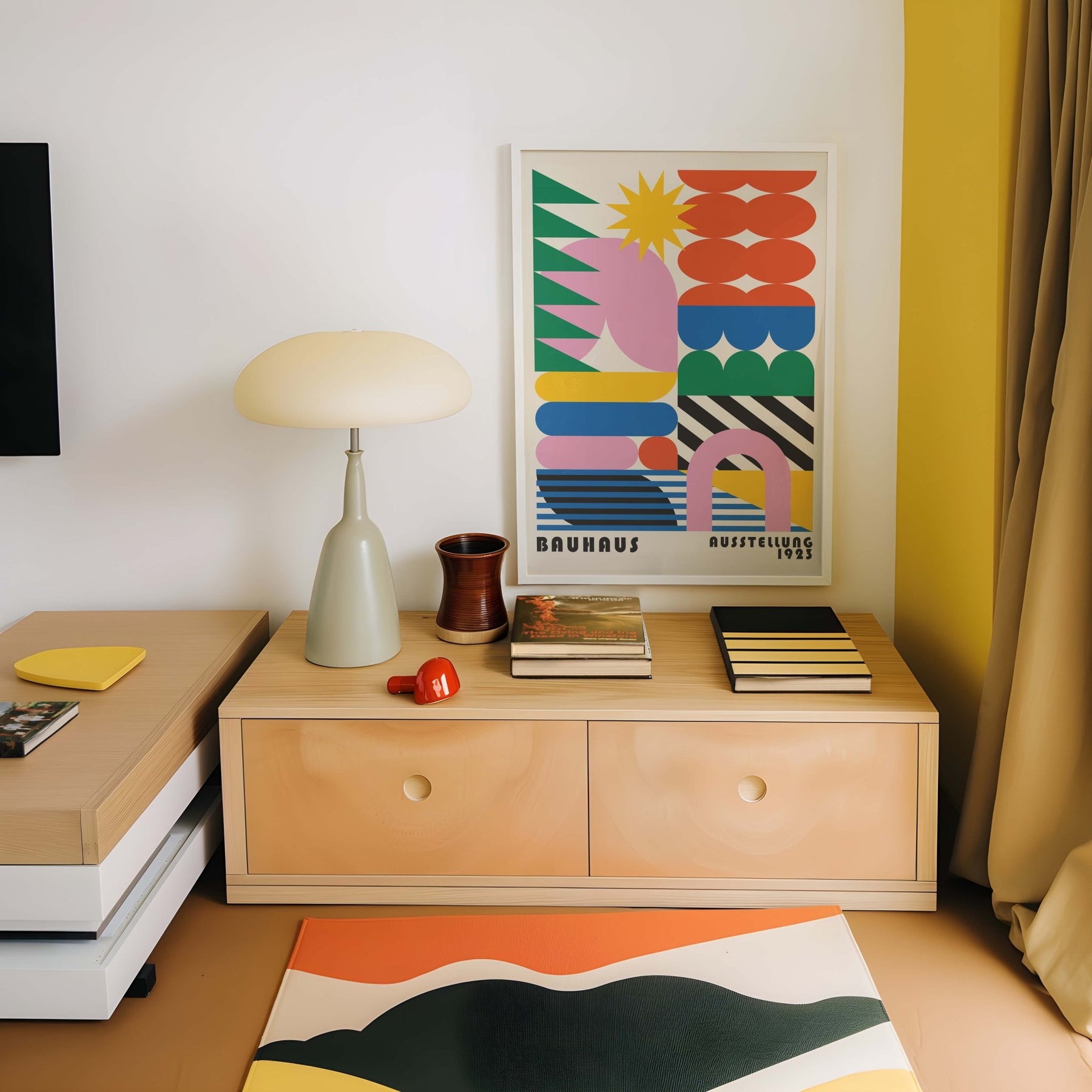 The Bauhaus Coloured Prisms Wall Art brings a refined touch of abstract design to any space. Featuring bold, geometric shapes in vibrant hues, this piece reflects the iconic Bauhaus philosophy of combining art and function. Its dynamic composition adds visual interest and energy, making it an ideal choice for those who appreciate modernist aesthetics and want to infuse their walls with creativity and color. Perfect for enhancing contemporary interiors with a sophisticated artistic statement.