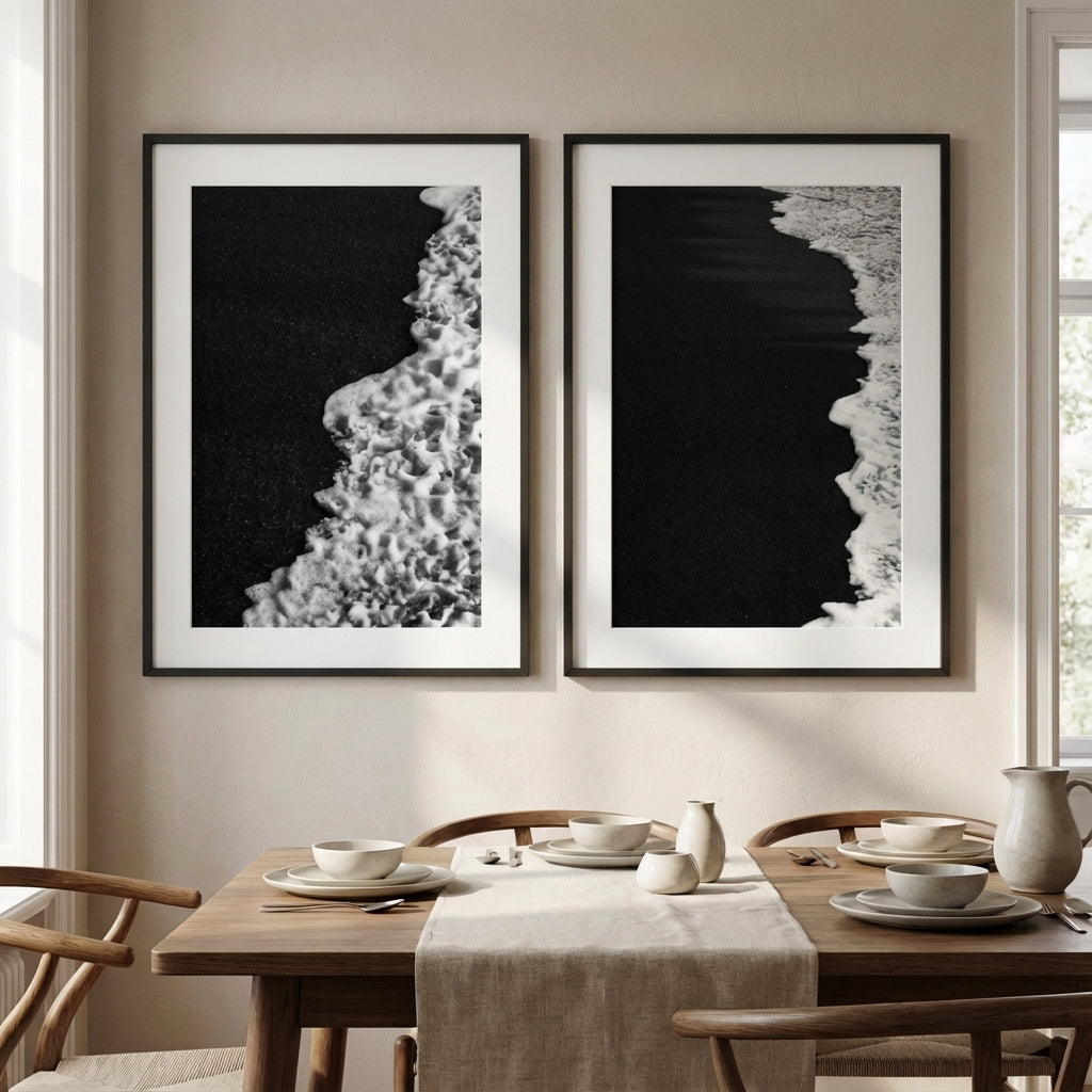 Capture the raw beauty of coastal landscapes with this striking set of two photographs by Casey McCallister. Each image showcases dramatic black sand beaches meeting dynamic wave formations, creating compelling compositions that evoke the power and tranquility of the ocean. The monochromatic palette and textural details make these pieces versatile additions to contemporary or minimalist interiors, offering visual depth and a connection to nature's most captivating moments. Perfect for creating a gallery wall or anchoring a room with sophisticated, nature-inspired artwork.