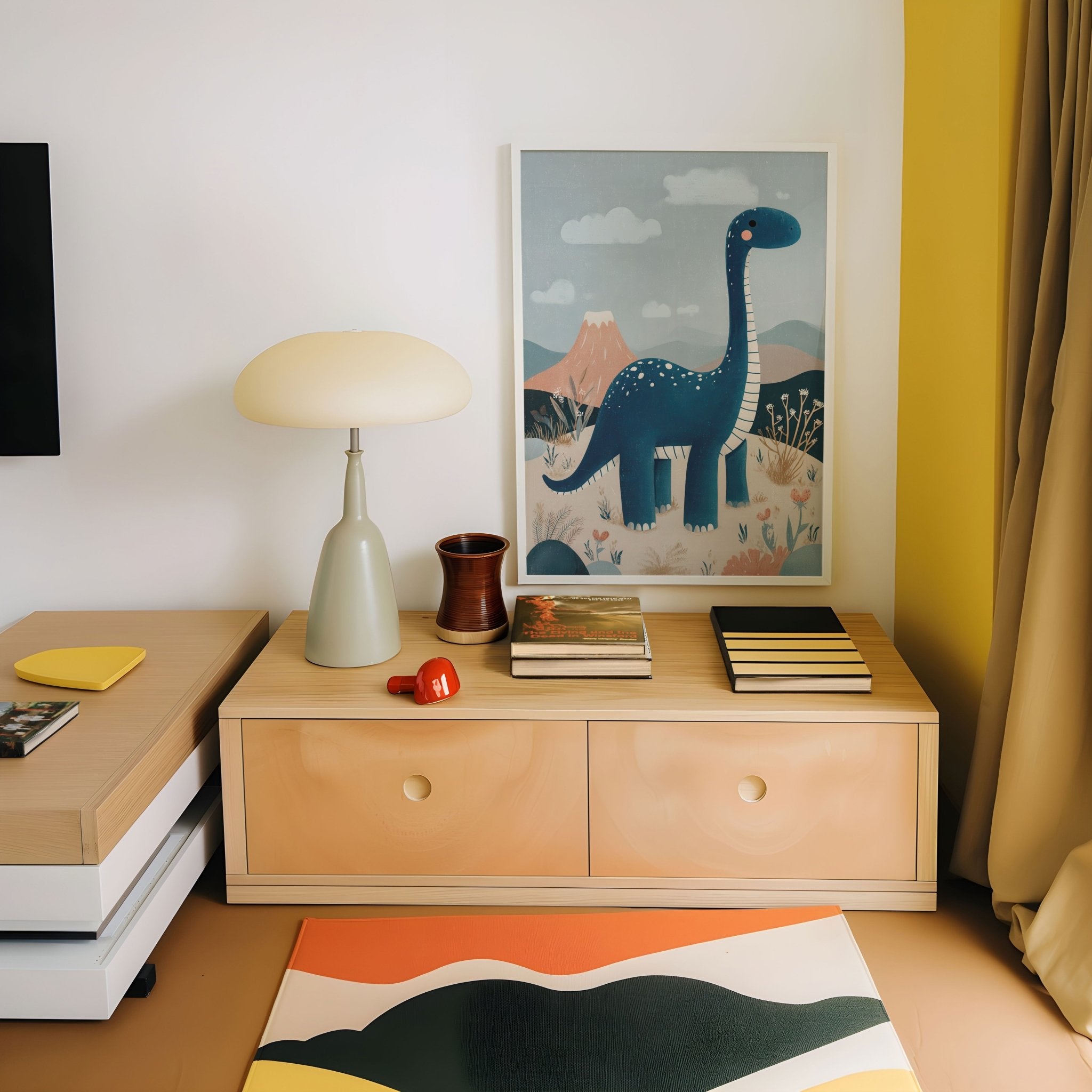 Bring a bold splash of fun to your child's space with this Blue Dinosaur Kids Wall Art Nursery Print. Perfect for nurseries, bedrooms, kitchens, or living rooms, this vibrant poster sparks imagination and adds a playful edge to any room. Its daring design makes it a standout piece that transforms ordinary walls into exciting adventures.