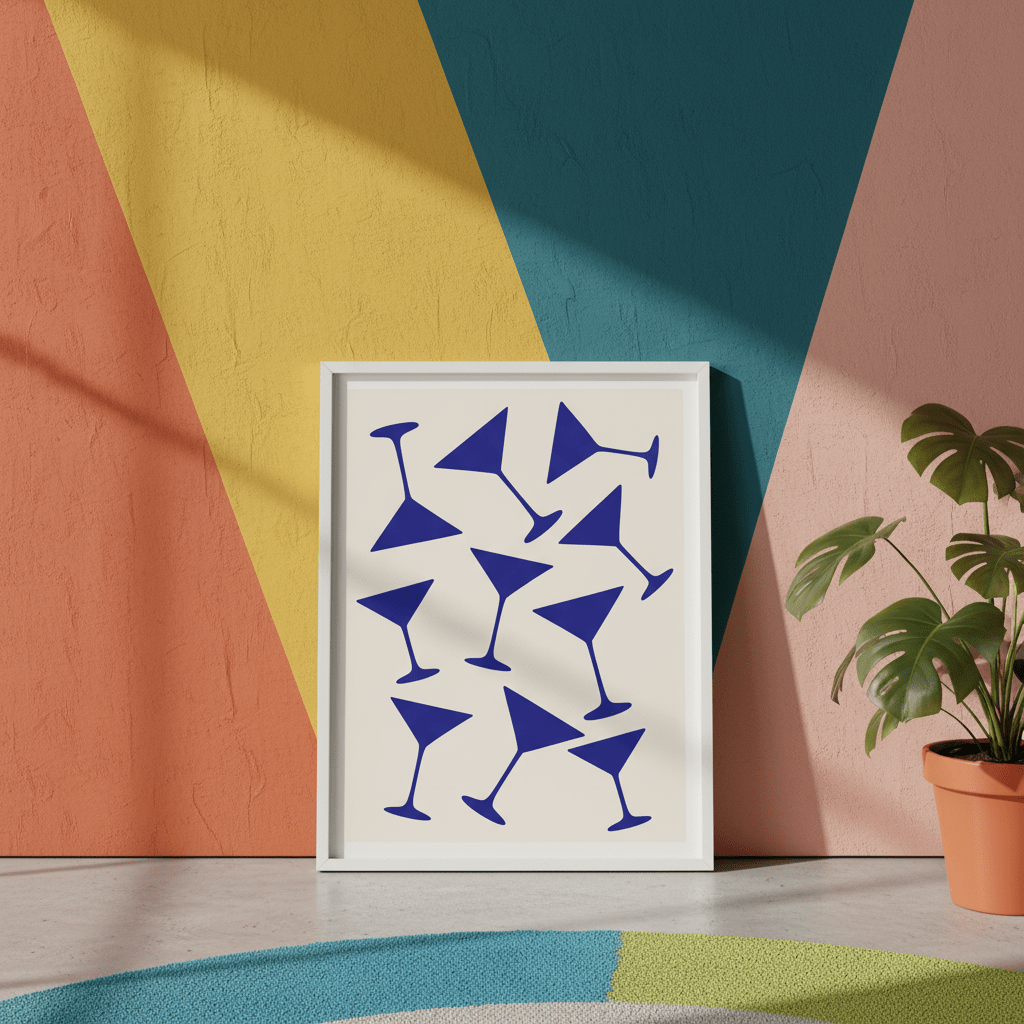 Blue Martini Repeated Pattern Wall Art Elevate your space with this sophisticated wall art featuring a refined blue martini motif in a seamless repeating pattern. Perfect for contemporary dining rooms, bars, or entertainment areas, this piece combines modern minimalism with timeless cocktail culture. The carefully curated pattern creates visual rhythm without overwhelming, while the cool blue palette complements both neutral and accent-colour schemes. Ideal for collectors seeking statement-making decor that balances artistic merit with functional elegance.