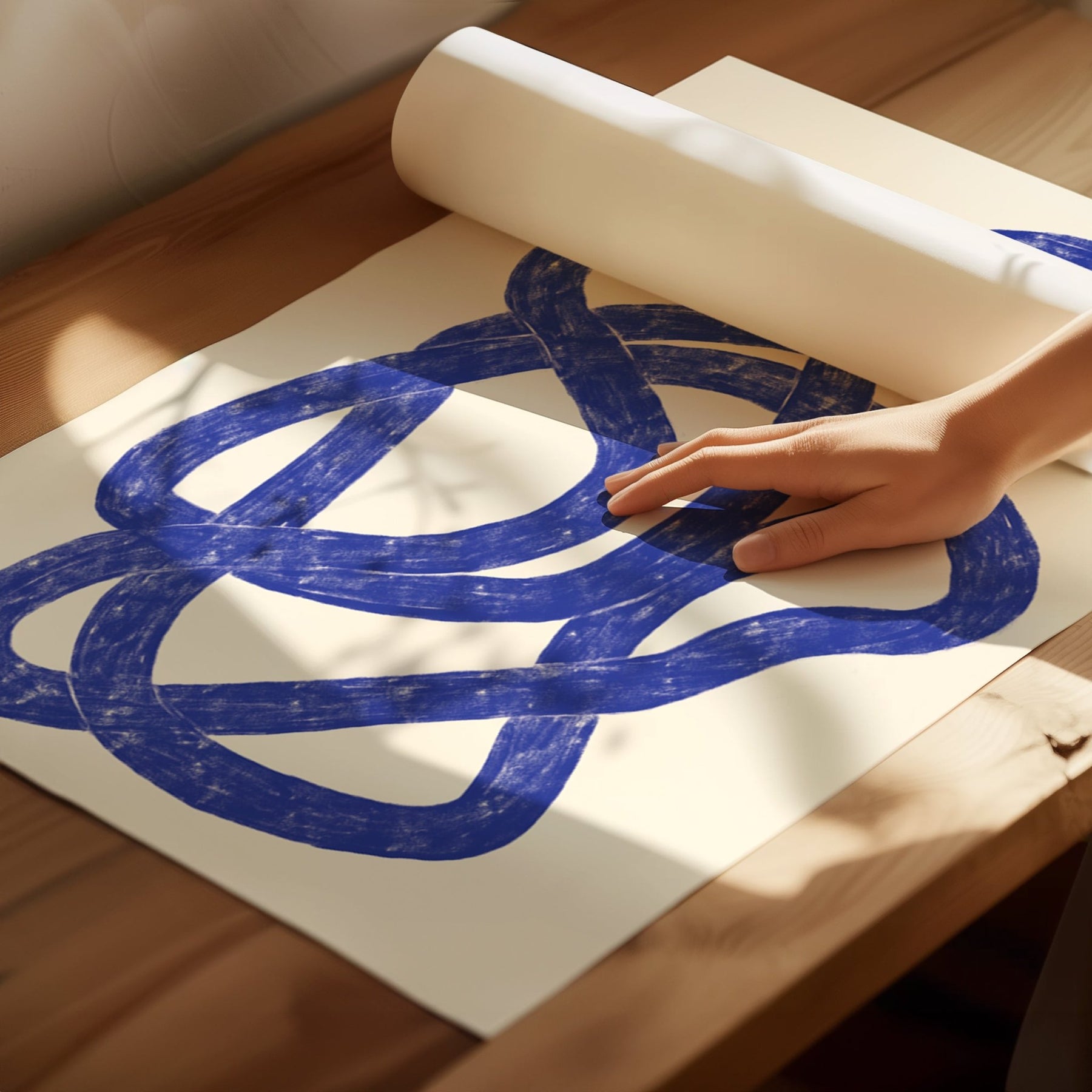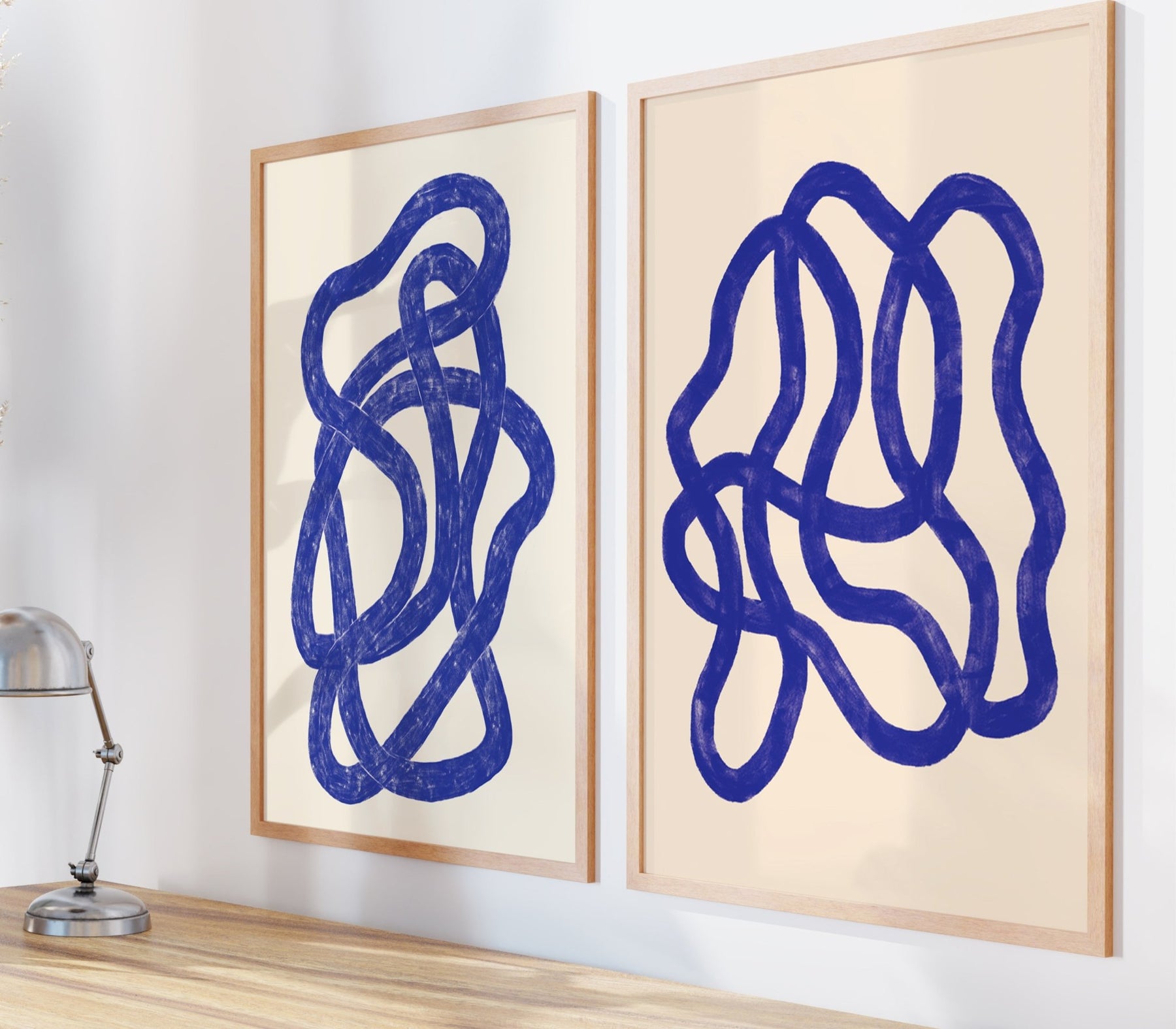 Elevate your living space with the Blue Rope & Scribble Pair by Maison Bootsy. This sophisticated poster duo blends abstract design with calming blue tones, making it a perfect accent for your living room, kitchen, or bedroom. Its modern aesthetic adds subtle artistic flair while maintaining a refined atmosphere. Ideal for those seeking to enhance their home with tasteful, contemporary art.