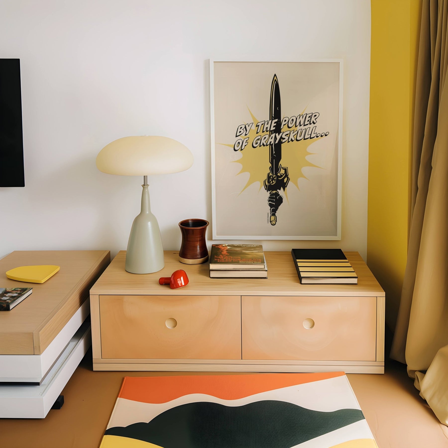 Bring the iconic power of He-Man to your space with this vibrant "By the Power of Gray Skull" print. Packed with retro comic charm and bold colors, it’s a fun, punchy tribute to Masters of the Universe that energizes any room with heroic flair. Perfect for fans who love a blast from the past and want to show off their fandom with style from the Mattel Collection.