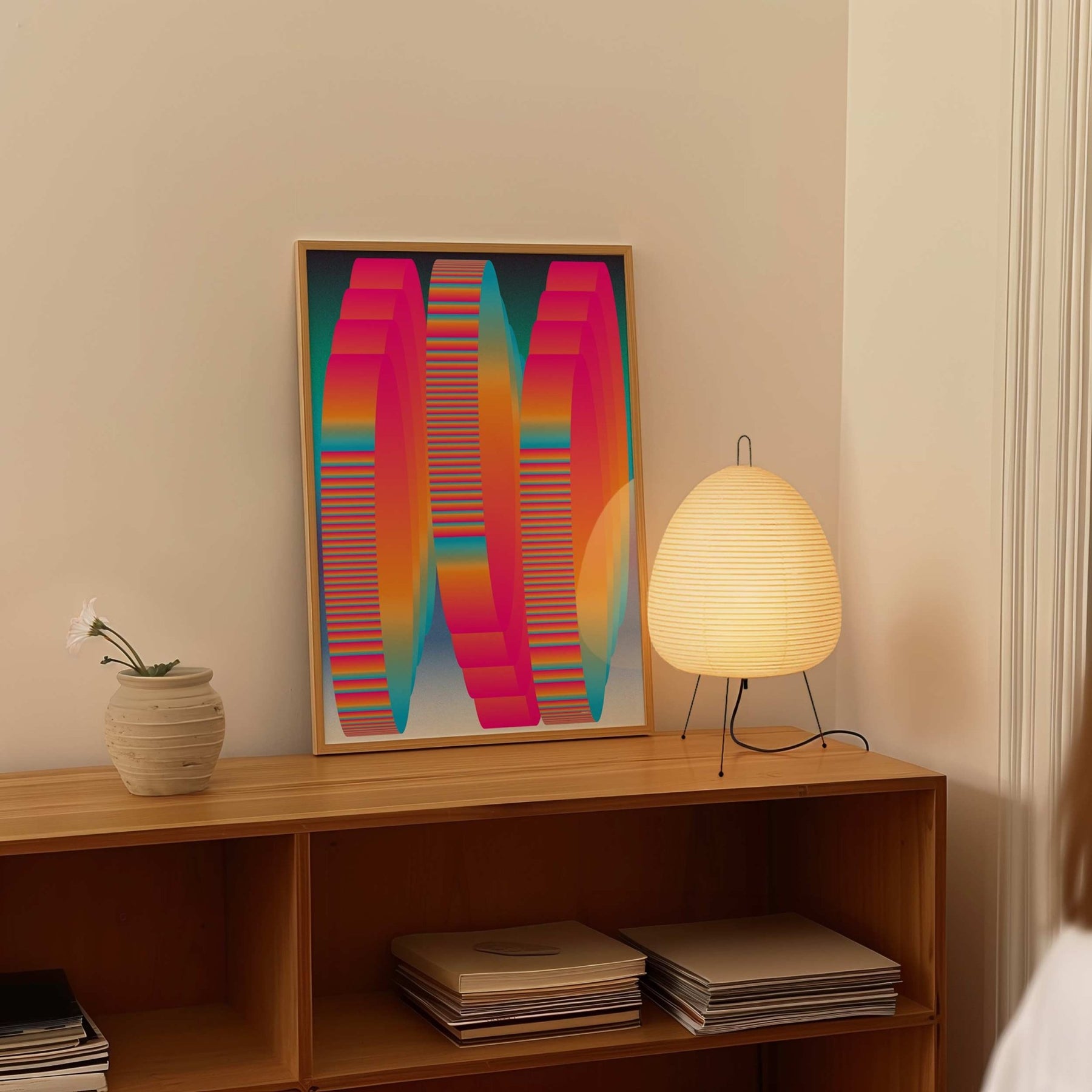 Step into the Chamber of Reflection, where bold Japanese-inspired abstraction meets vibrant pops of color. Designed by Maxim Dosca, this striking piece challenges the ordinary, inviting you to explore depth and contrast in a daring visual journey. Perfect for those who crave art that provokes thought and energizes any space.