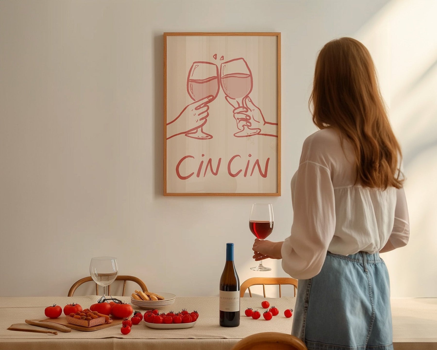 Add a pop of fun to your kitchen, living room, or dining room with Cheers Cin Cin by Lucia Sankovic. Perfect for brightening up any space, this piece will also make a great addition to your study or gallery wall. Spruce up your hallway with this lively artwork!