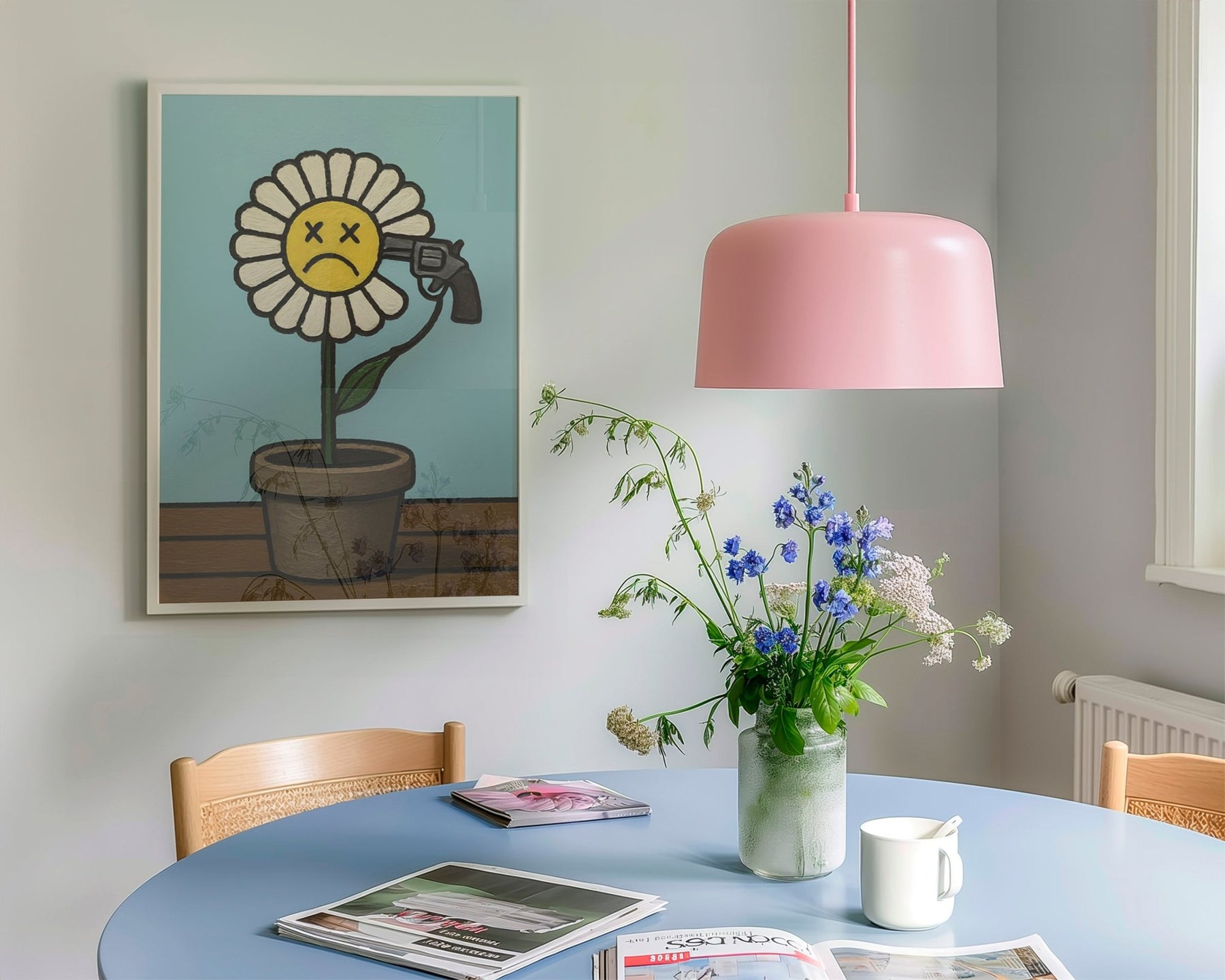 Add a bold statement to your space with the Daisy Gun Wall Art. This daring poster blends playful charm with edgy design, perfect for energizing your living room, kitchen, or bedroom. Its unique style sparks conversation and adds a fearless touch to your décor.