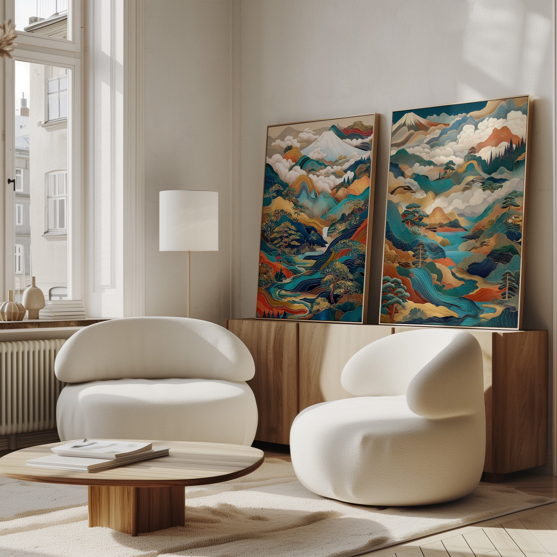 Capture the serene majesty of Japan's most iconic peak with this striking duo print collection. Each piece showcases Mount Fuji through a distinctive artistic lens, blending traditional Japanese aesthetics with contemporary design sensibilities. Perfect for living rooms, kitchens, or bedrooms, these prints transform any space into a gallery of cultural elegance. The complementary pair creates visual interest when displayed together or stands beautifully on its own. High-quality printing ensures vibrant colours and crisp details that endure, while the versatile sizing adapts to various wall configurations. Bring timeless Japanese artistry into your home with prints that spark conversation and inspire contemplation.