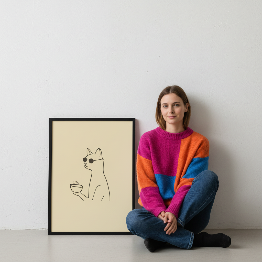 Feline Morning Coffee Feelin' captures the perfect intersection of feline charm and morning ritual. This gallery-quality art print features a sophisticated cat illustration paired with coffee aesthetics, ideal for kitchen spaces, home offices, or any room that celebrates the quiet moments before the day begins. The composition balances playful animal character with editorial-style photography sensibilities, delivering a statement piece that resonates with coffee enthusiasts and cat lovers alike. Premium print quality ensures lasting colour vibrancy and detail clarity. Perfect as a standalone focal point or as part of a curated wall art collection.