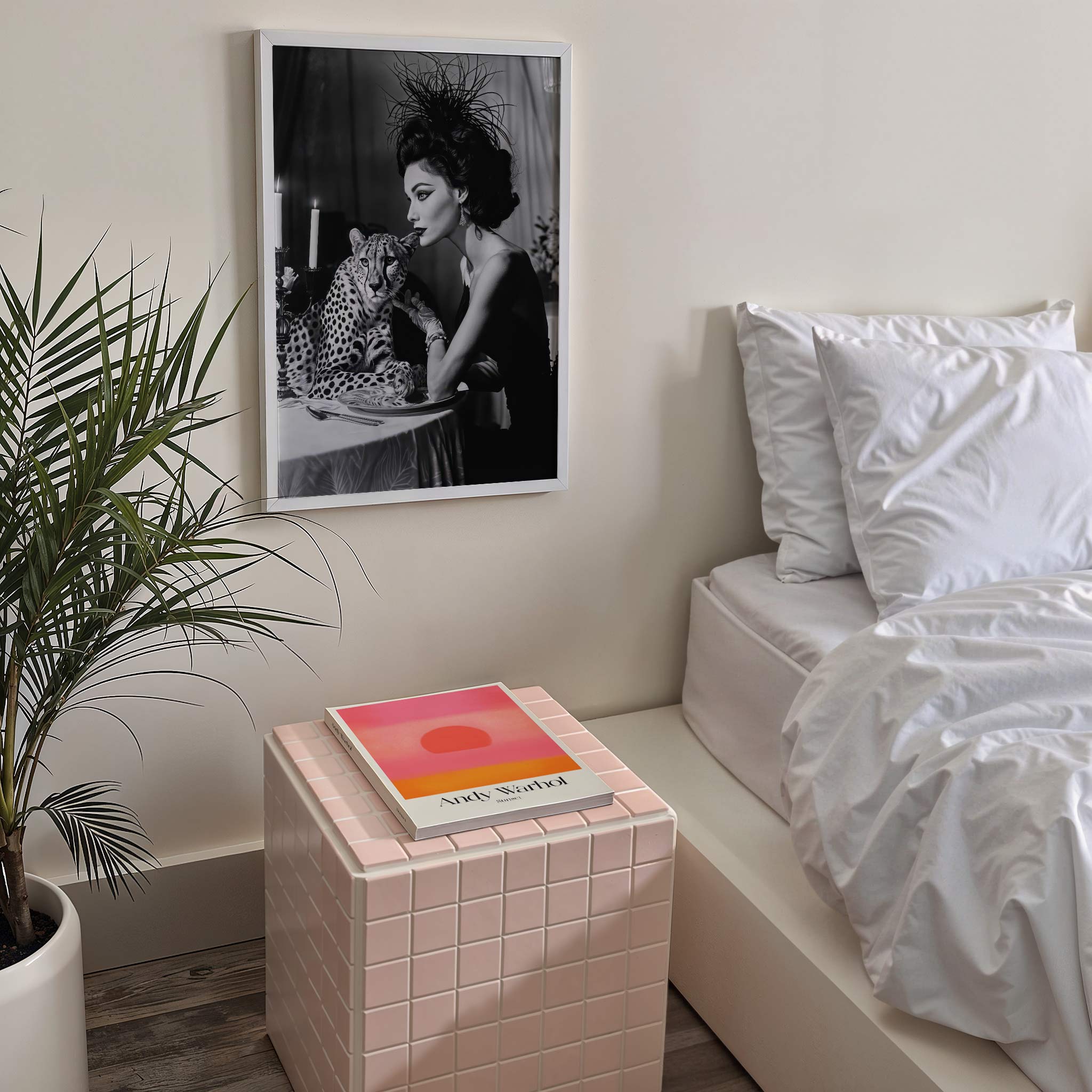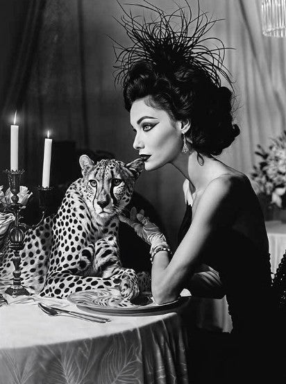 Feline Noir captures the raw elegance of a leopard in striking monochromatic tones. This sophisticated photography print combines dramatic contrast with refined composition, delivering a gallery-quality statement piece for contemporary interiors. The timeless black-and-white palette ensures seamless integration with any décor scheme, while the subject's commanding presence adds depth and visual intrigue to your space. Perfect for those who appreciate fine art photography with understated luxury.