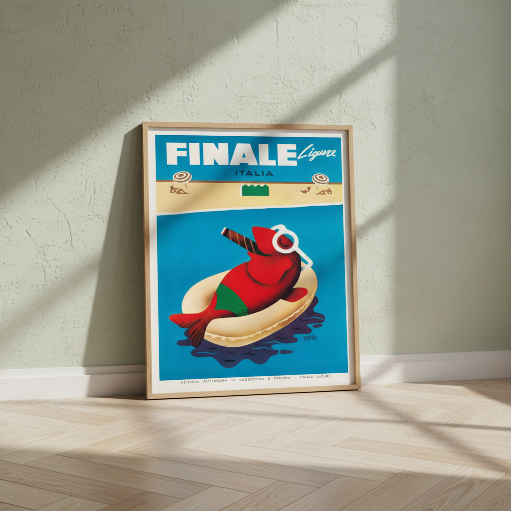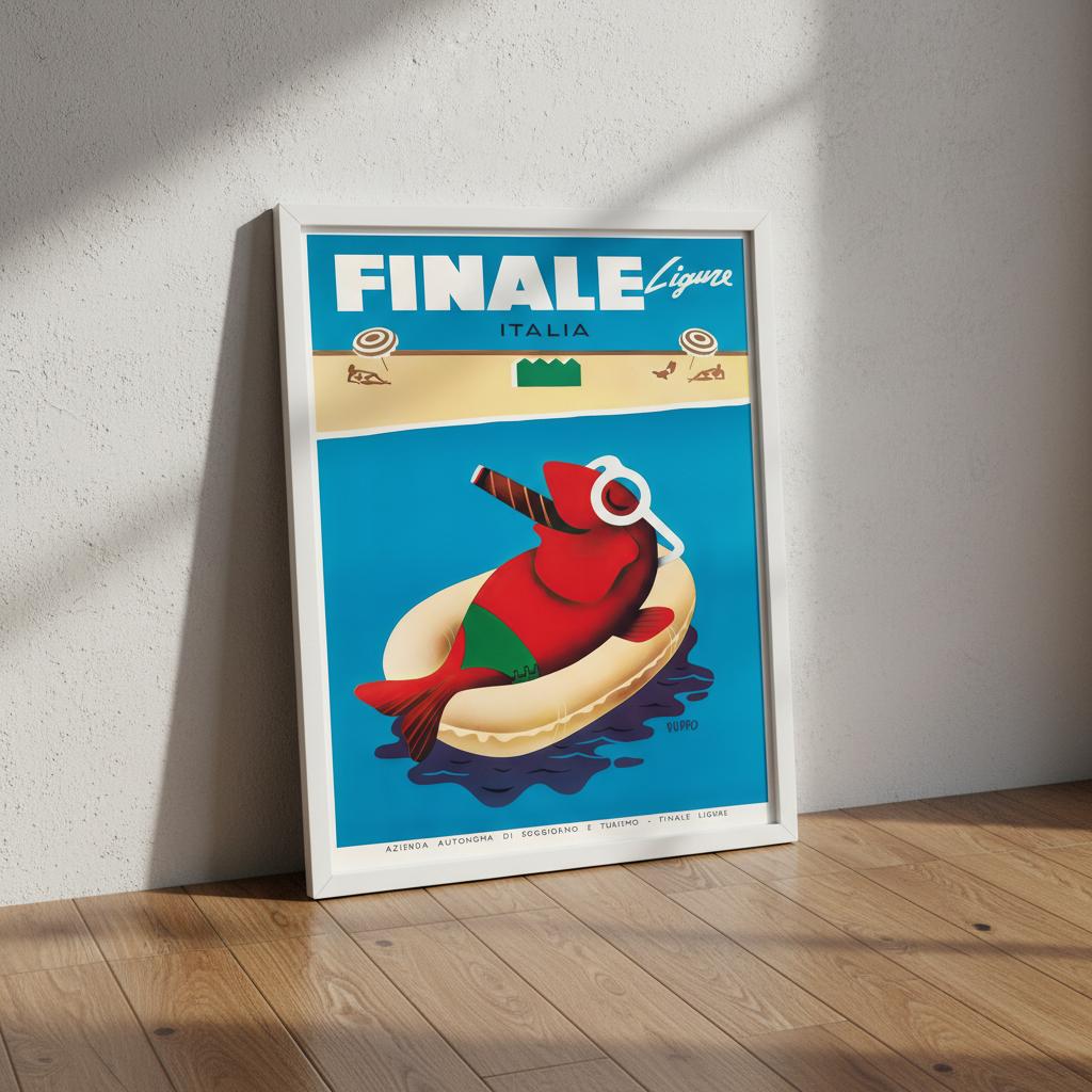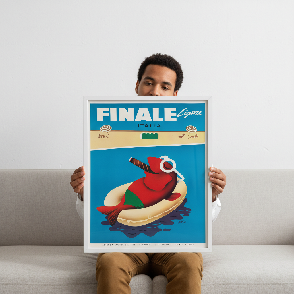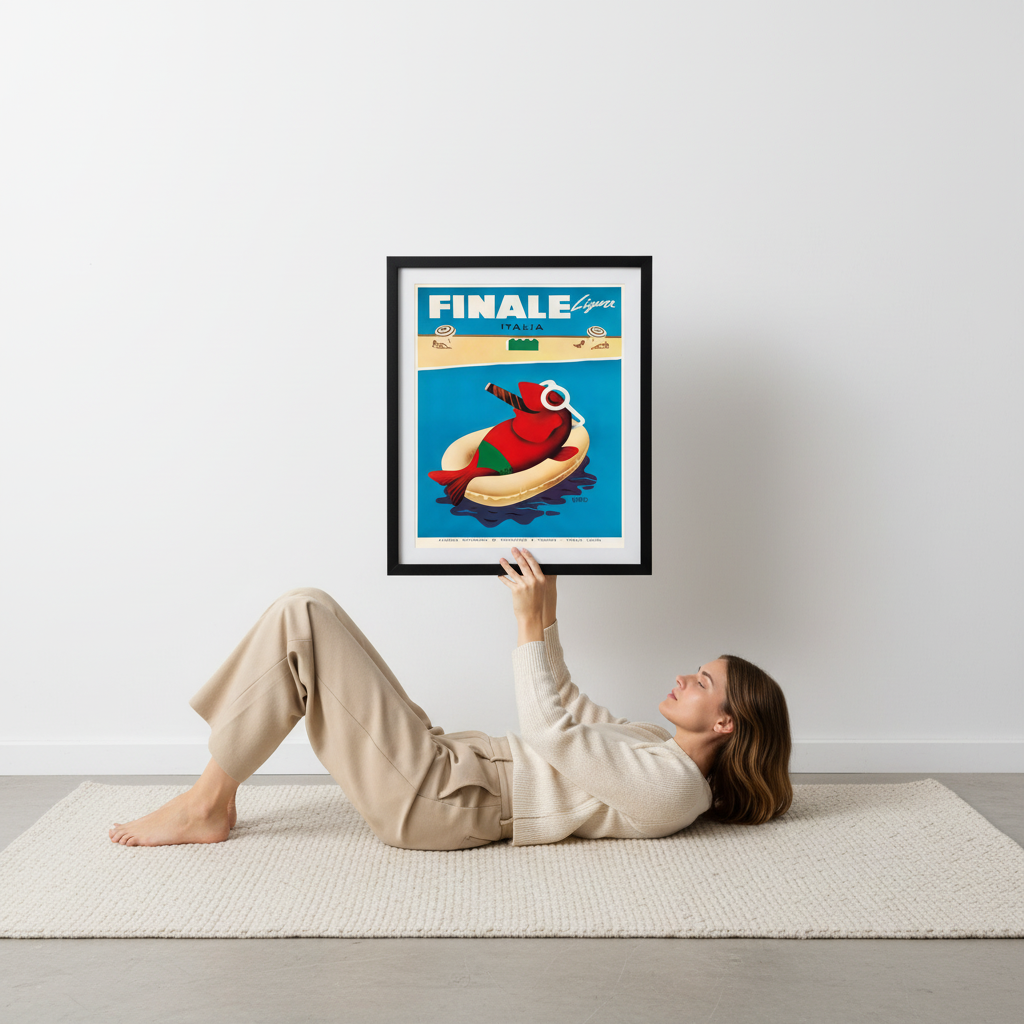 Discover the timeless allure of Italy's Ligurian coast with this striking vintage advertisement poster for Finale Ligure. Rendered in the classic style of early 20th-century travel promotion, this piece captures the romantic essence of a beloved Mediterranean destination. Perfect for collectors of vintage ephemera, travel enthusiasts, or anyone seeking to infuse their space with European charm and nostalgic sophistication. The muted palette and period typography evoke an era when seaside escapes represented the pinnacle of leisure travel. An ideal statement piece for galleries, studies, or living spaces with a refined aesthetic sensibility.