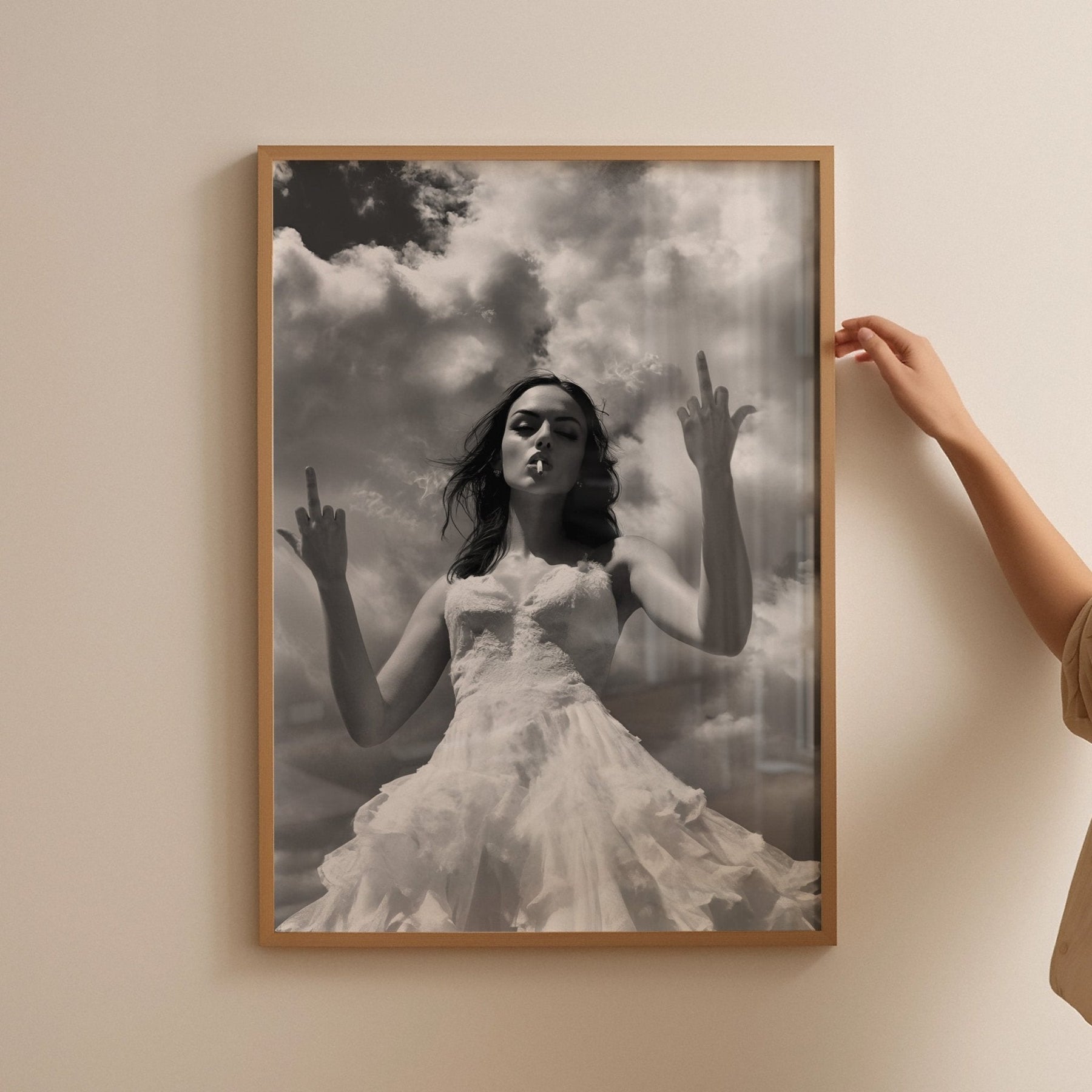 Elevate your home decor with our Finger Feminist Wall Art Photography. This unique and fun poster will add a touch of personality to any room. Perfect for your living room, kitchen, or bedroom. Show your support for feminism with this eye-catching piece. Available now to add a unique and empowering touch to your home.