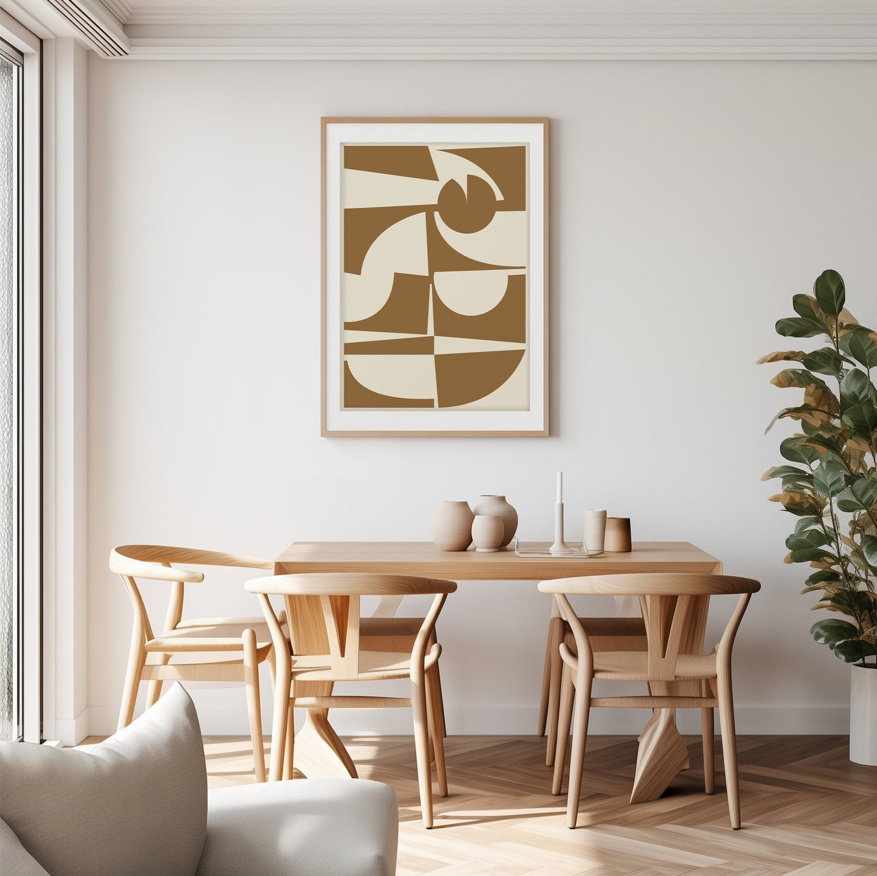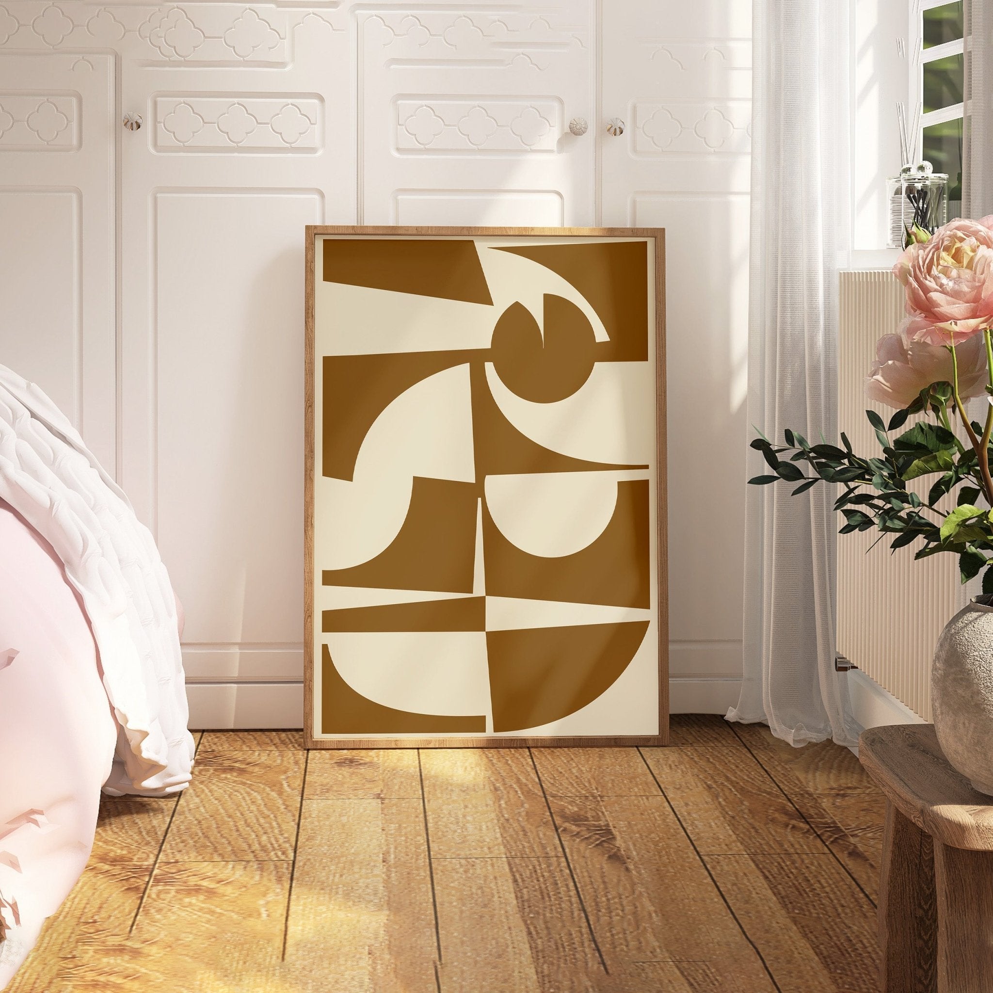 Add an artistic touch to your home decor with the Geometric Brown Portrait Abstract poster by Maison Boot. This versatile piece is perfect for any room, from the living room to the bedroom, kitchen to study. The geometric design adds a unique and modern aesthetic to any space.