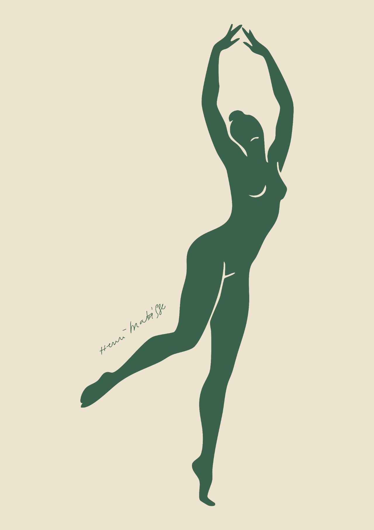 Inspired by Henri Matisse's iconic cut-out aesthetic, this vibrant green dancing figure captures the essence of movement and joy. The bold, simplified form celebrates the artist's revolutionary approach to colour and composition, transforming a dynamic human silhouette into an abstract celebration of vitality. Perfect for contemporary interiors seeking a statement piece that balances artistic sophistication with visual energy. A timeless work that brings Matisse's modernist vision into your space.