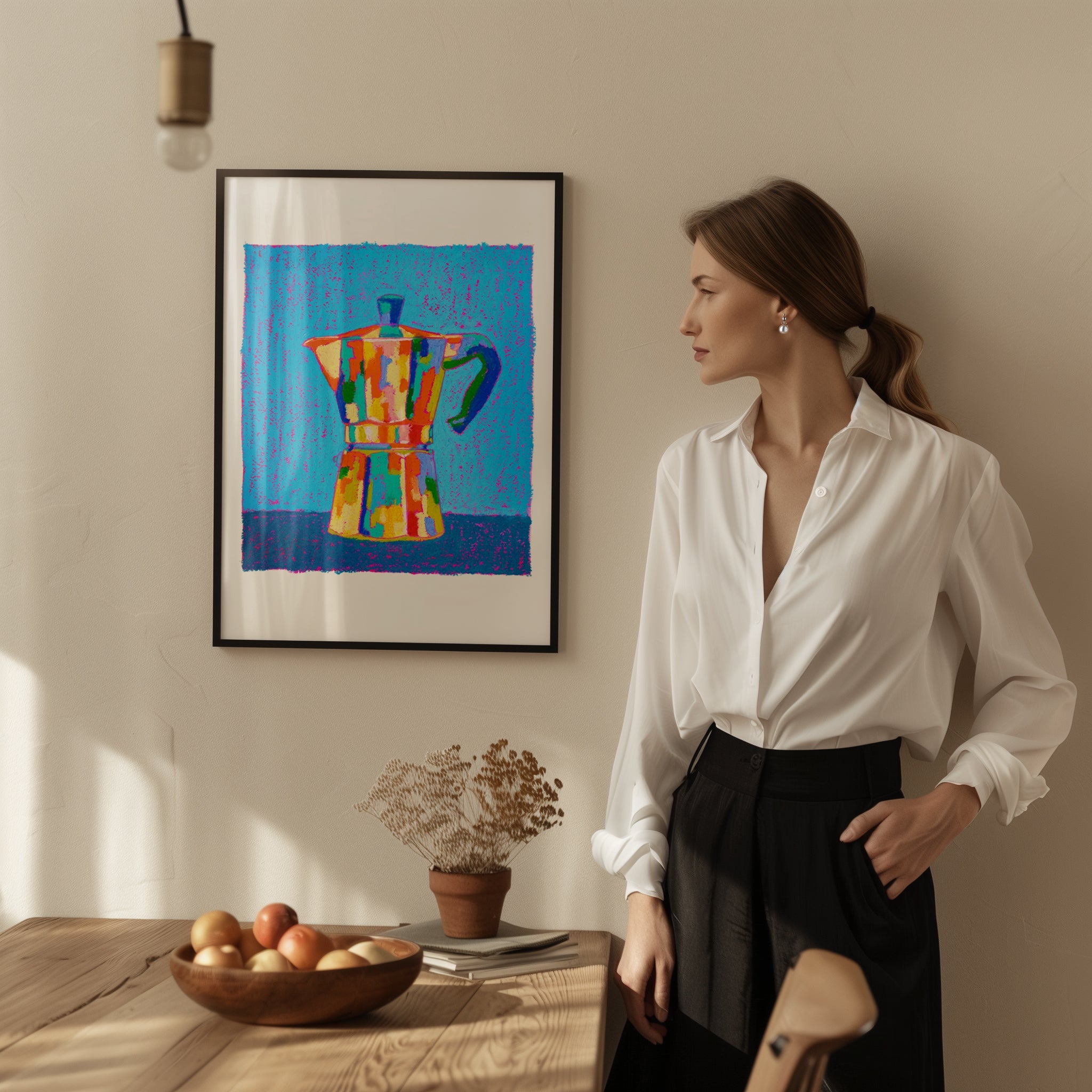 Add a splash of charm to any room with the Italian Coffee Pot poster by Julia Ockert. Its playful design brings warmth and a touch of whimsy, perfect for brightening your living room, kitchen, or bedroom. Celebrate your love for coffee with this fun and stylish artwork that invites cozy moments and cheerful vibes.