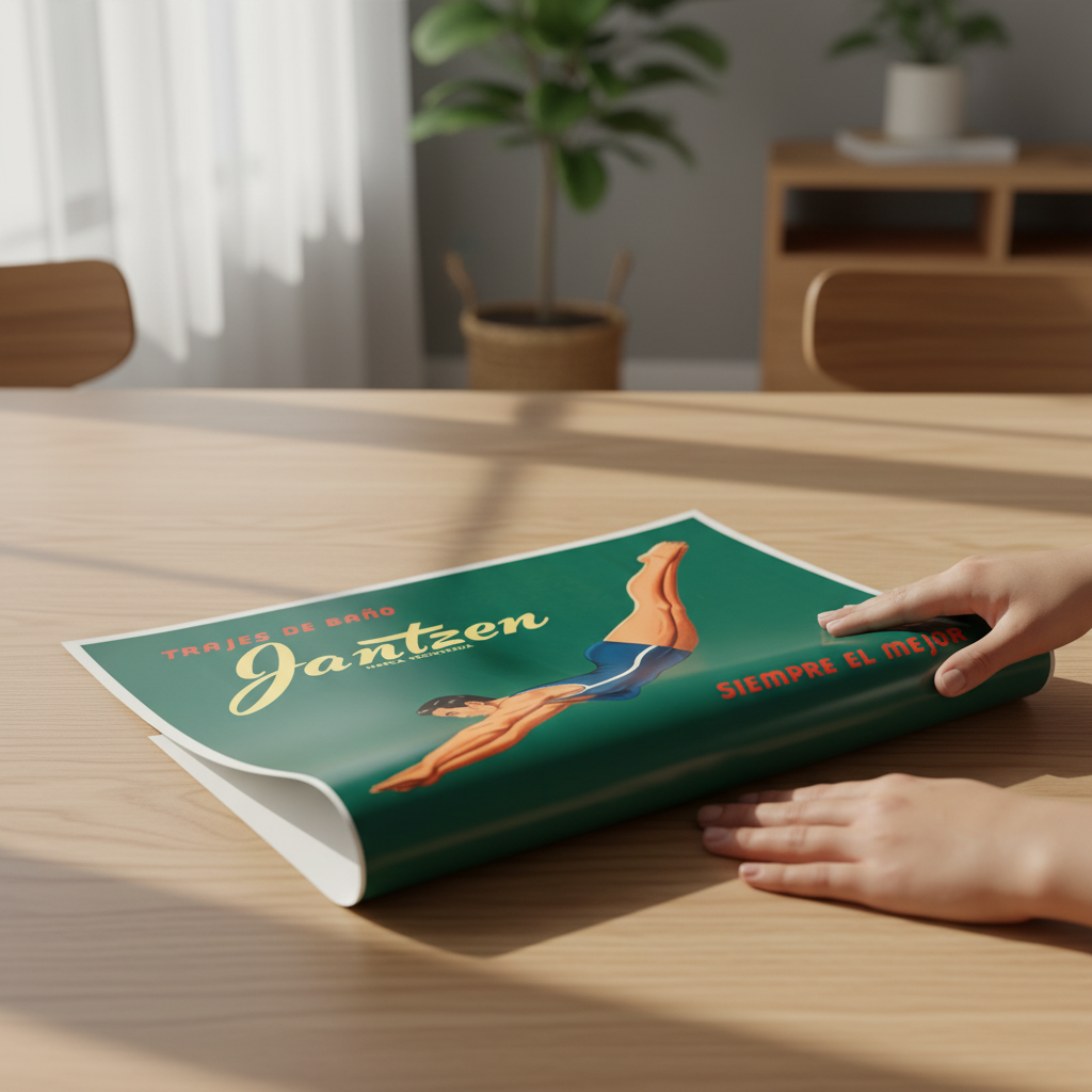 Celebrate mid-century design with this striking Janzten vintage swimwear advertisement poster. Featuring iconic 1950s imagery and typography, this piece captures the golden age of American leisure culture and fashion illustration. Perfect for adding nostalgic charm to a bedroom, bathroom, or entertainment space, it pairs beautifully with retro or eclectic interiors. High-quality print reproduction brings authentic period aesthetics to modern walls. A conversation starter for vintage enthusiasts and design collectors alike.