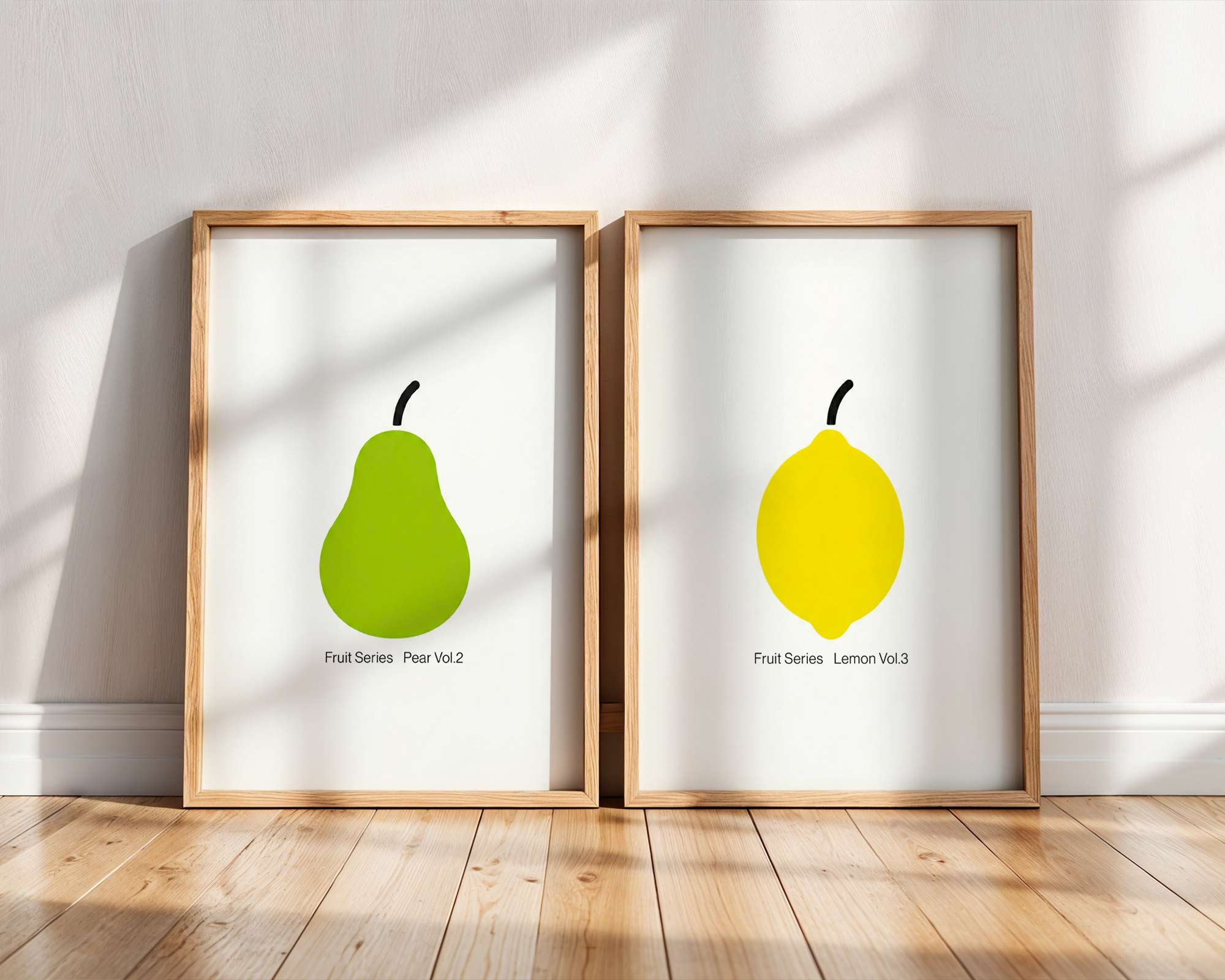 Transform your living space with our Lemon & Pear Fruit Series Vol.2 Wall Art Duo. The set features two minimalistic prints of refreshing lemons and pears, perfect for adding a touch of nature to your home. Elevate your decor with this vibrant and expertly crafted fruit series volume 2.
