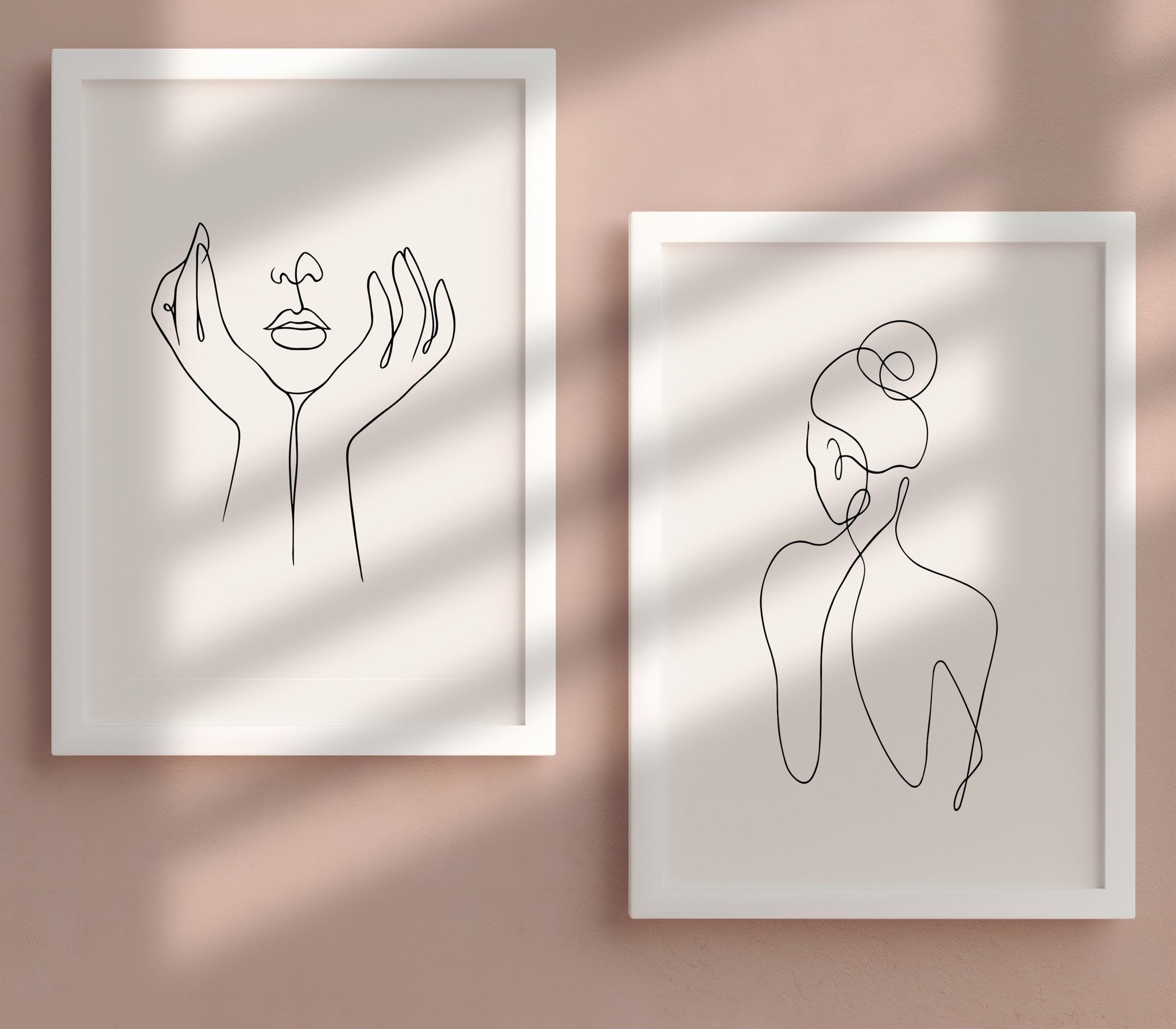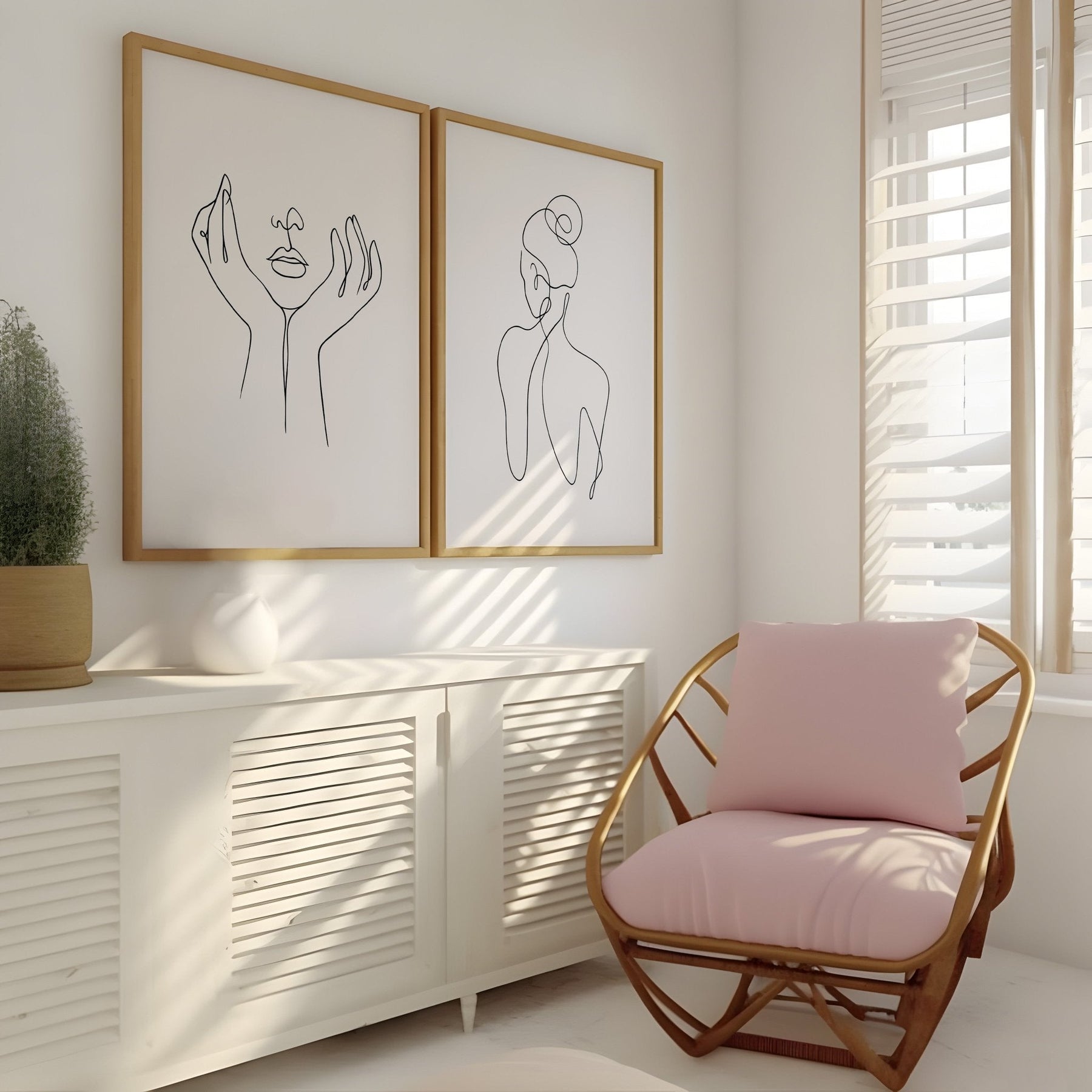 This set of line art woman portraits adds a touch of fun to any space, making it perfect for a study, kitchen, living room, or dining room. Hang them together for a stylish gallery wall or spread them out throughout your home. Their versatile design complements any décor style.
