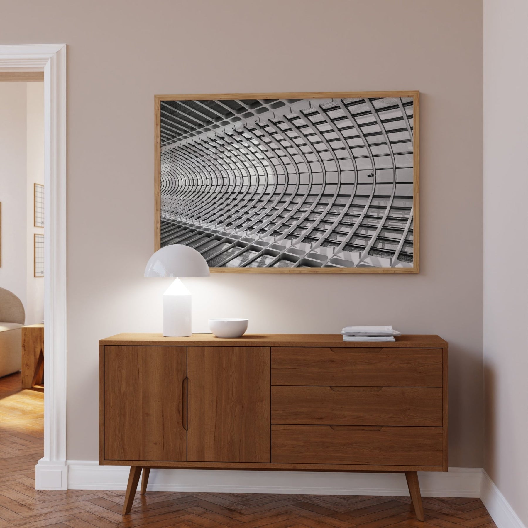 Lines For Days by Nicole Hunter captures the elegance of architectural symmetry through striking linear patterns. This photograph transforms any space with its refined composition and timeless design, offering a sophisticated focal point that complements modern interiors. Perfect for those who appreciate minimalist art with a strong visual impact.