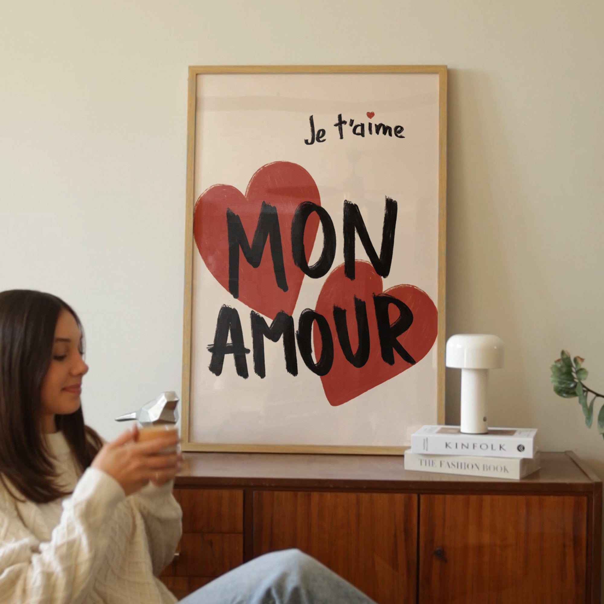 This Mon Amour Kitchen Print is a delightful addition to any living room, kitchen, or bedroom. Show off your love for the kitchen with this fun and stylish poster. Its charming design is sure to bring joy and personality to any space. Made with high-quality materials, it is the perfect piece for any food lover.