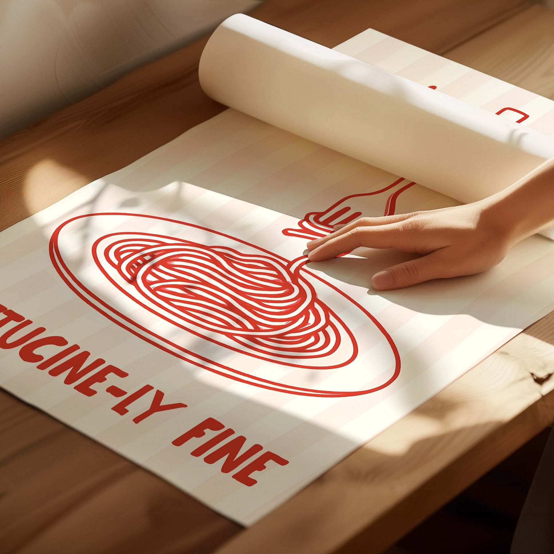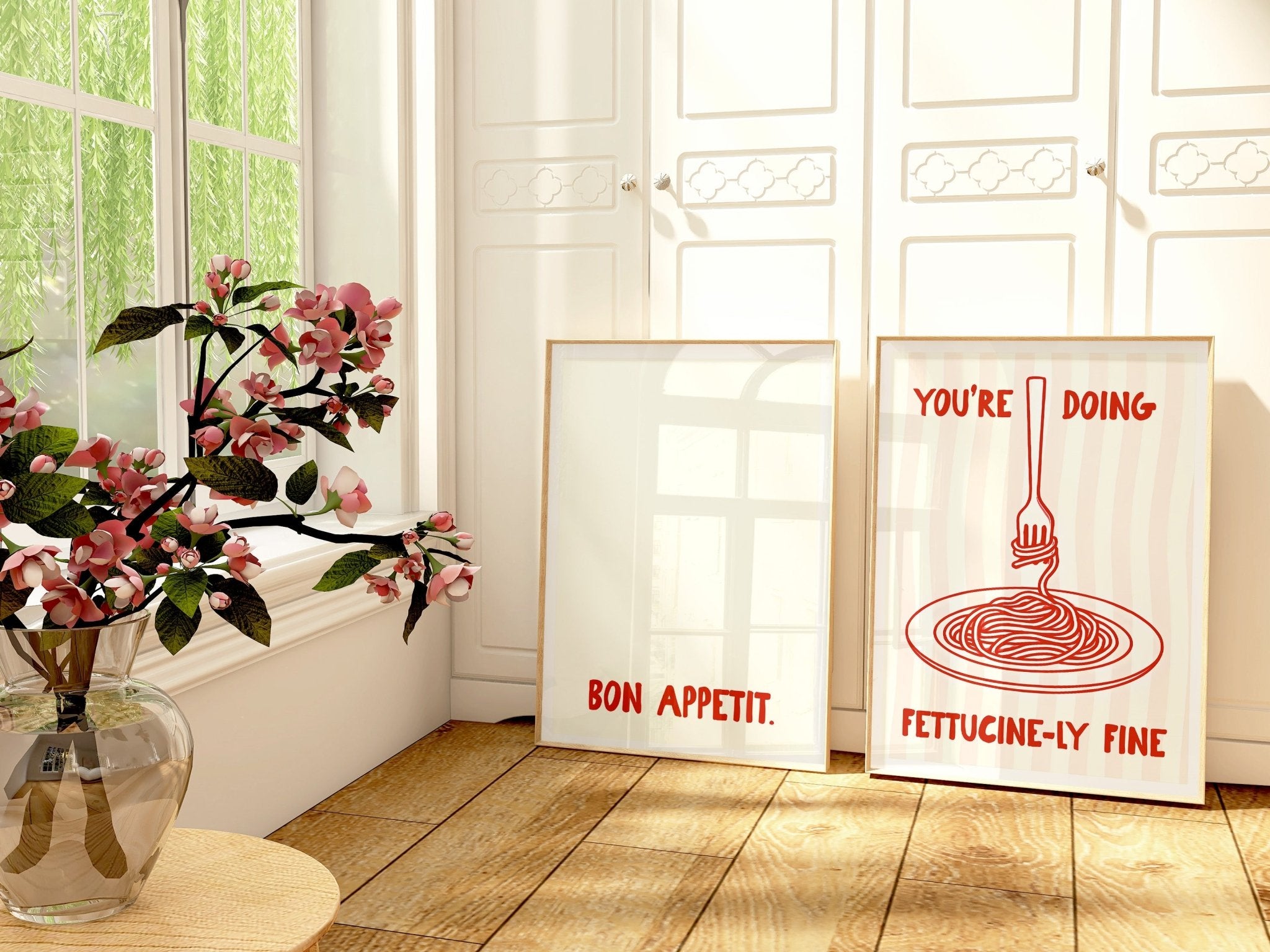 Elevate your culinary spaces with this charming set of two kitchen prints celebrating the art of pasta-making. Featuring playful illustrations of fettuccine with refined typography, these pieces bring wit and sophistication to your kitchen, dining room, or bedroom walls. Perfect for food enthusiasts and design-conscious homeowners, they combine culinary passion with contemporary aesthetics. Each print is thoughtfully designed to complement modern and eclectic interiors while sparking conversation. Display them together for maximum impact or scatter throughout your home for cohesive style. An ideal choice for those seeking functional art that celebrates the joy of cooking and good taste.