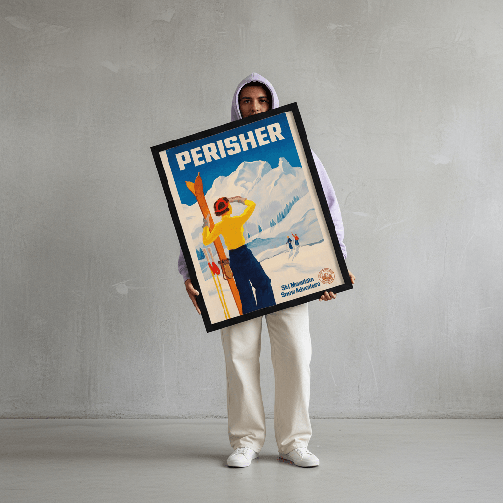 Perisher Vintage Ski Advertisement Poster Capture the golden age of Australian alpine tourism with this authentic vintage ski advertisement poster. Featuring iconic Perisher imagery from a bygone era, this piece celebrates the heritage and allure of one of Australia's premier snow destinations. The retro aesthetic brings nostalgic charm to any space, while the bold typography and period-accurate design reflect mid-century travel poster craftsmanship. Perfect for ski enthusiasts, collectors of vintage ephemera, or anyone drawn to classic Australian cultural memorabilia. A striking statement piece that combines historical significance with timeless visual appeal.