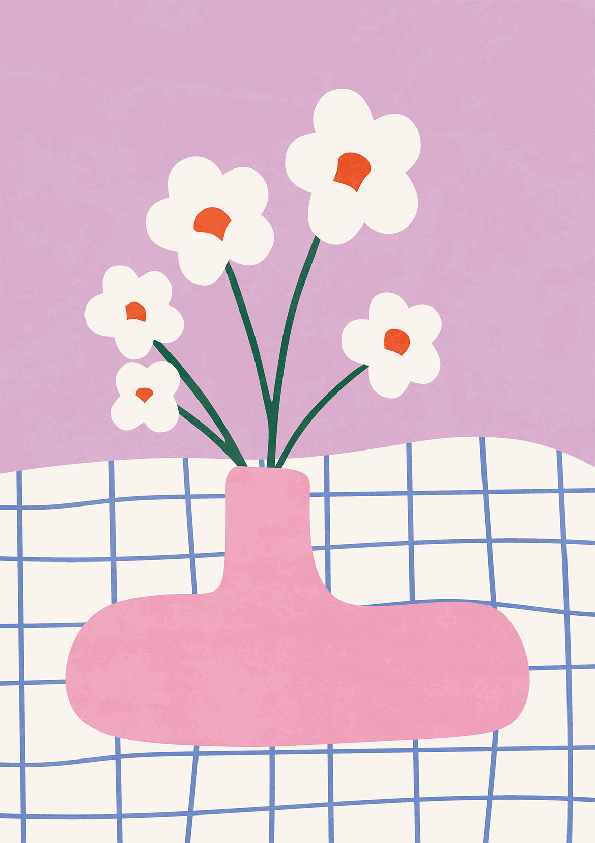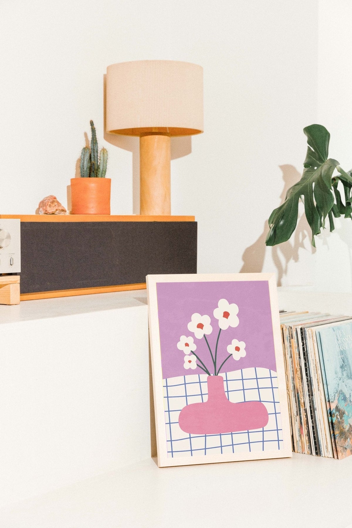 Enhance your living space with this elegant Pink Abstract Daisies Print. Adorn any room with this vibrant and stylish poster, perfect for kitchens, living rooms, and bedrooms. Its modern design and colorful depiction of daisies will liven up any space. Add a touch of beauty to your home today.
