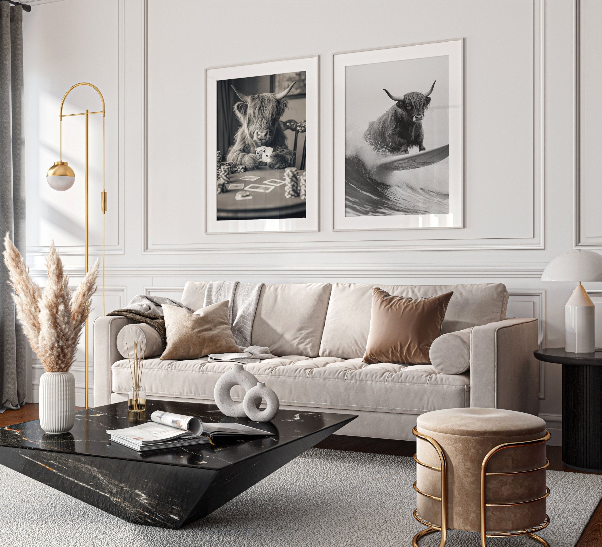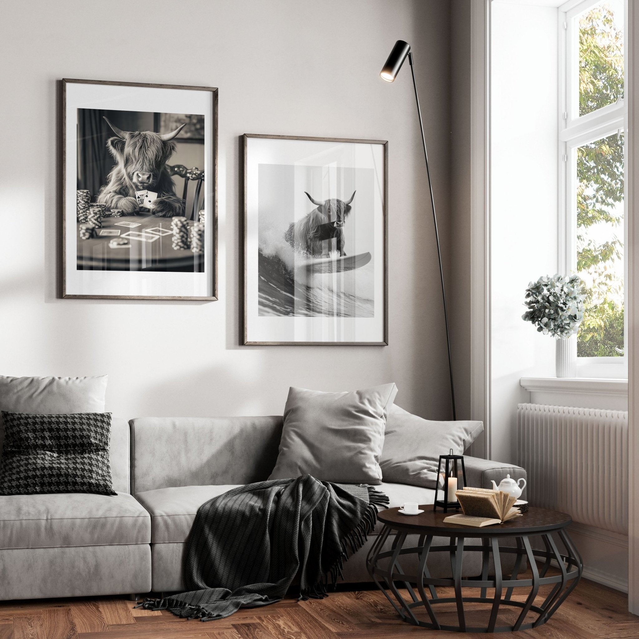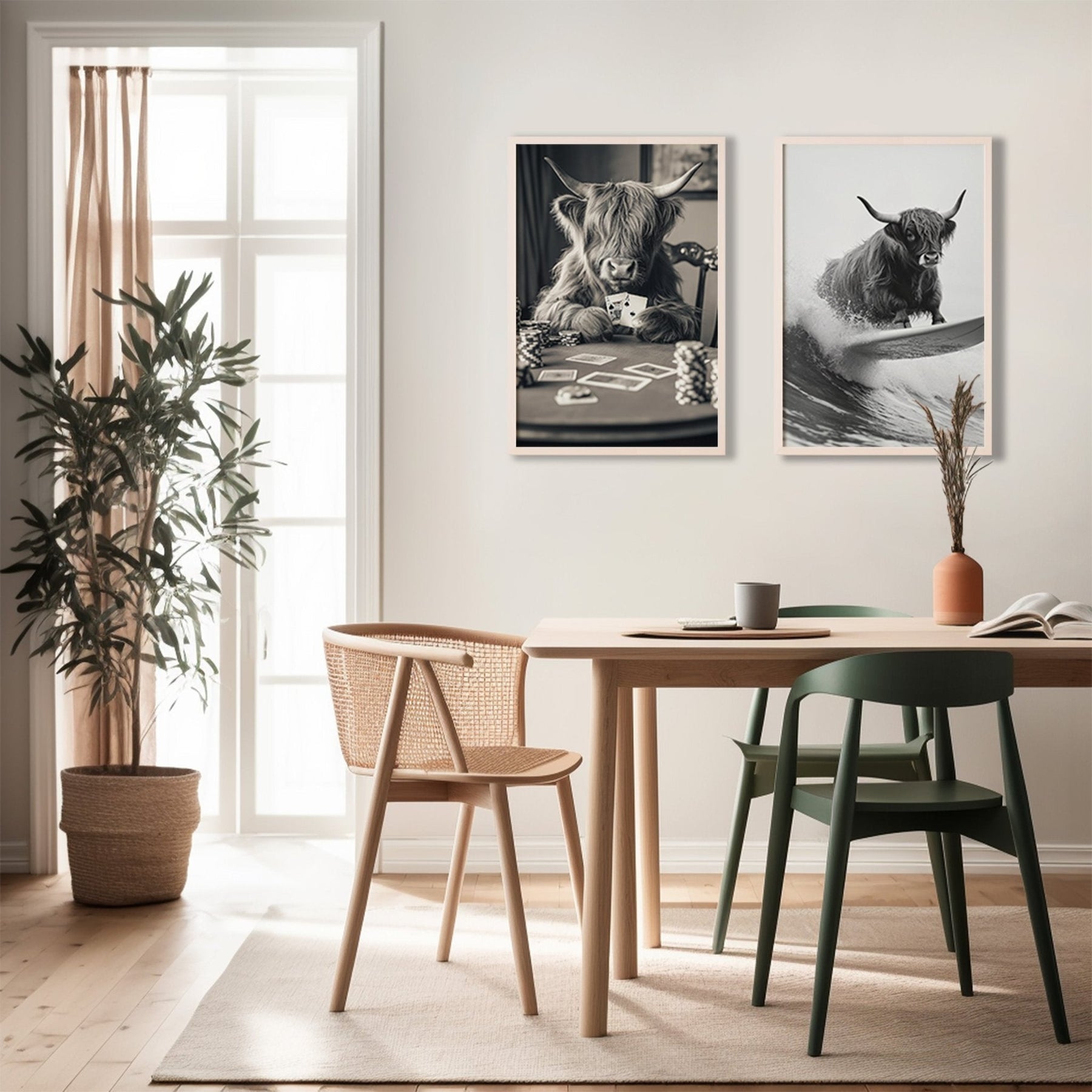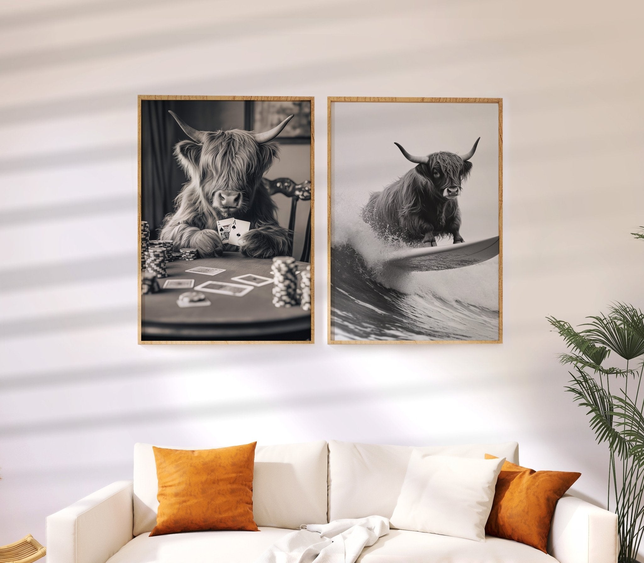 Upgrade your living room, kitchen, or bedroom with our Retro Highland Cow Series Set of 2. These fun and stylish posters will add a touch of vintage charm to your space. Expertly crafted with high-quality materials, these posters are a must-have for any cow lover!