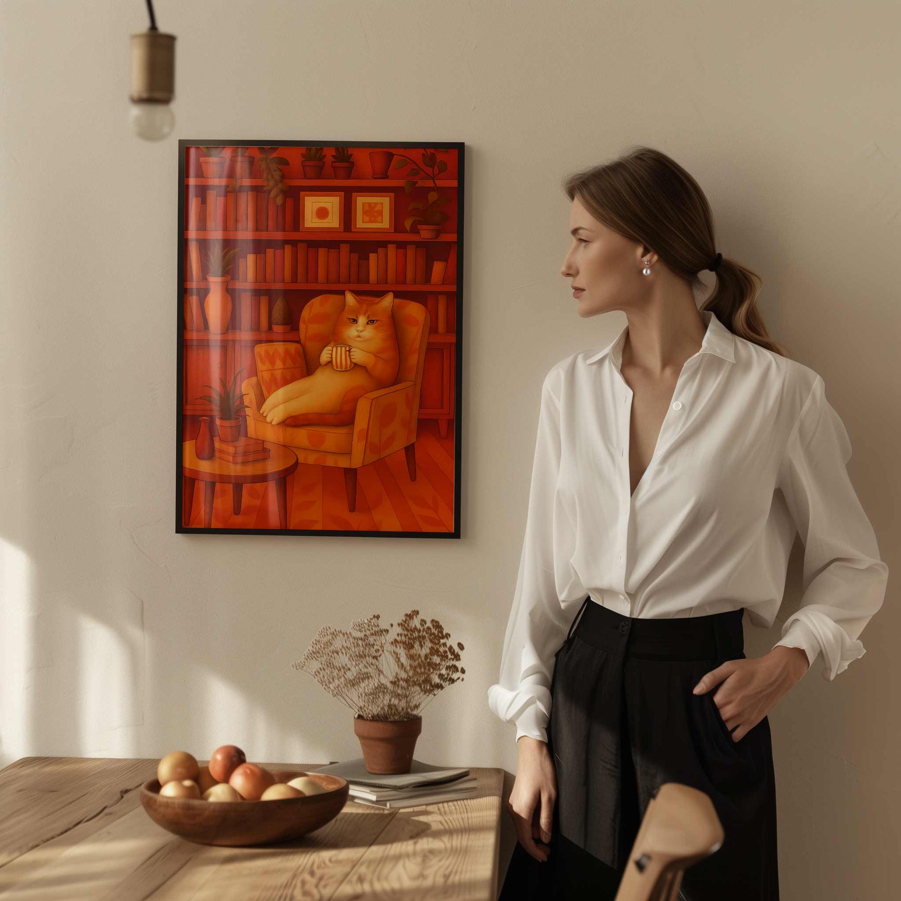 Elevate your space with this sophisticated wall art print featuring a literary feline in repose. "The Purrfect Disguise" artfully captures a contemplative cat absorbed in literature, creating an elegant focal point that speaks to both bibliophiles and cat enthusiasts. The refined illustration merges whimsy with cultural sophistication, transforming any room into a thoughtful sanctuary.