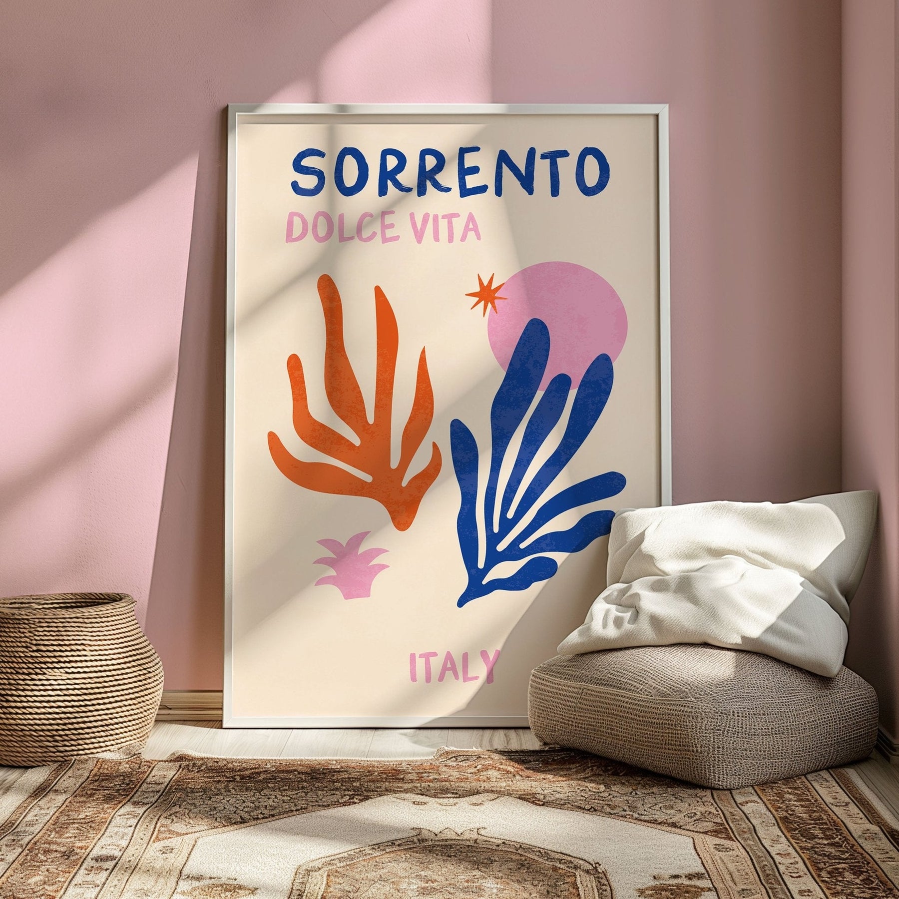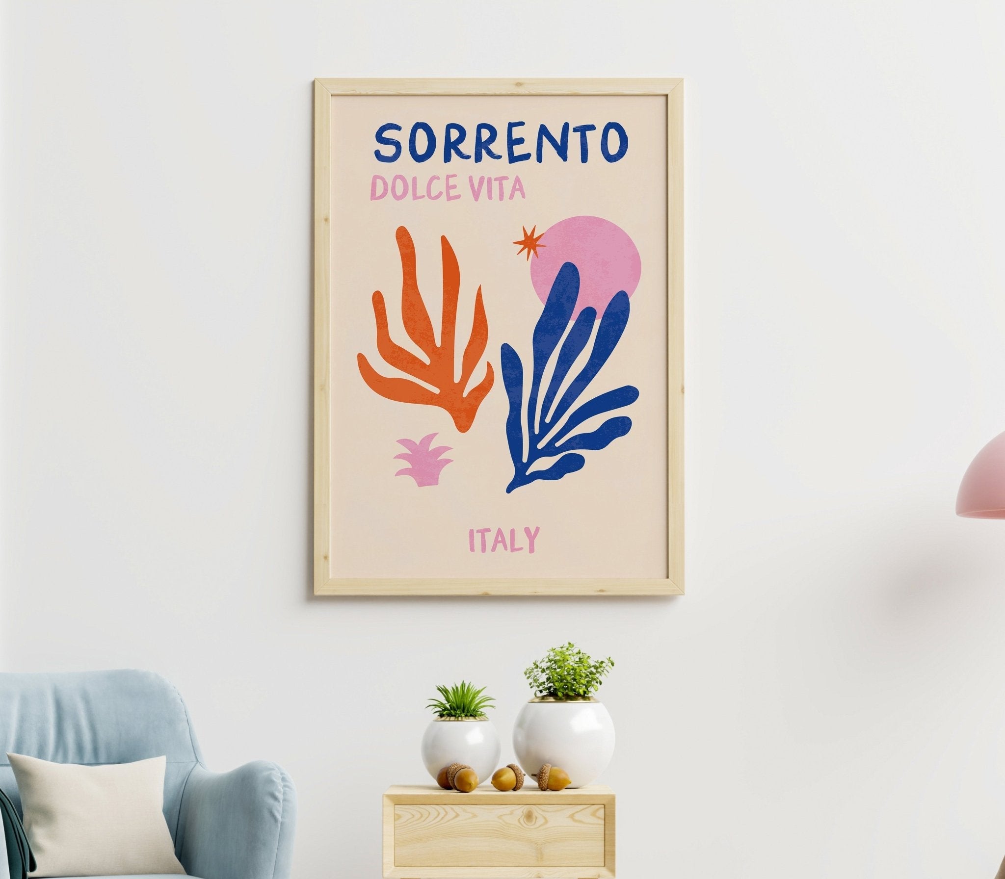 This Sorrento Italy Print adds a touch of fun to your living room, kitchen, or bedroom. Capturing the beauty and charm of Sorrento, this poster will transport you to the scenic landscape of Italy. Perfect for those with a love for travel and culture.