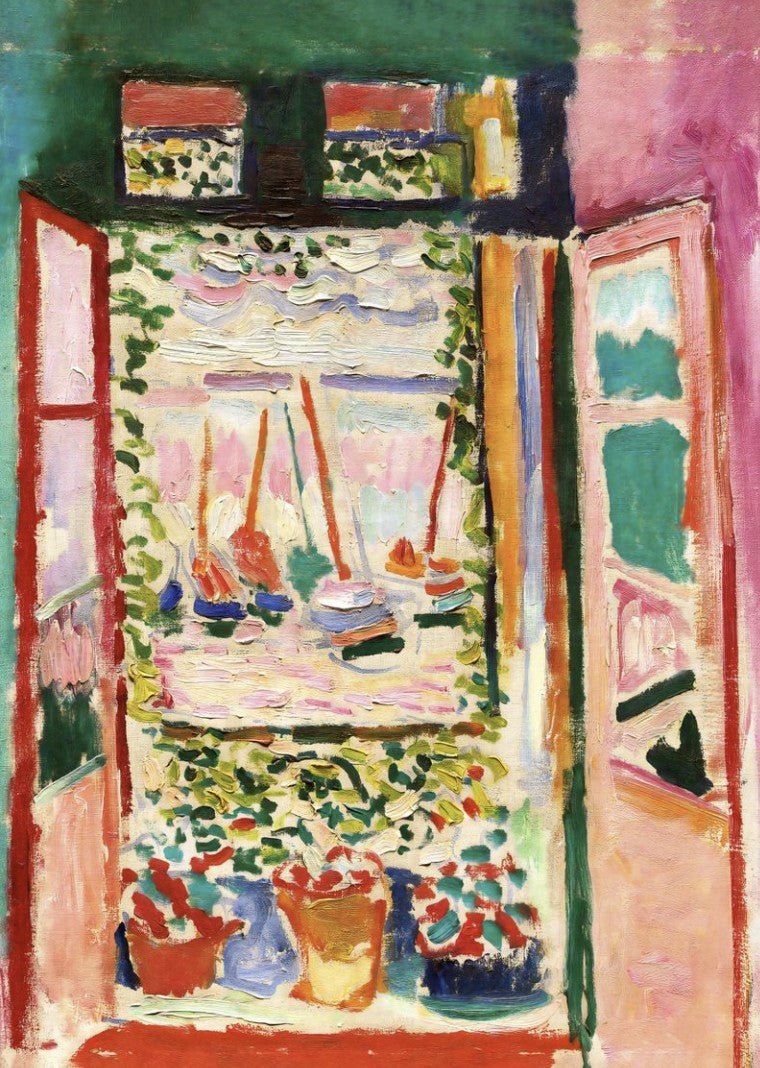 Enhance your living space with 'The Open Window By Henri Matisse Wall Art', featuring a captivating painting of a window overlooking a serene view of boats.