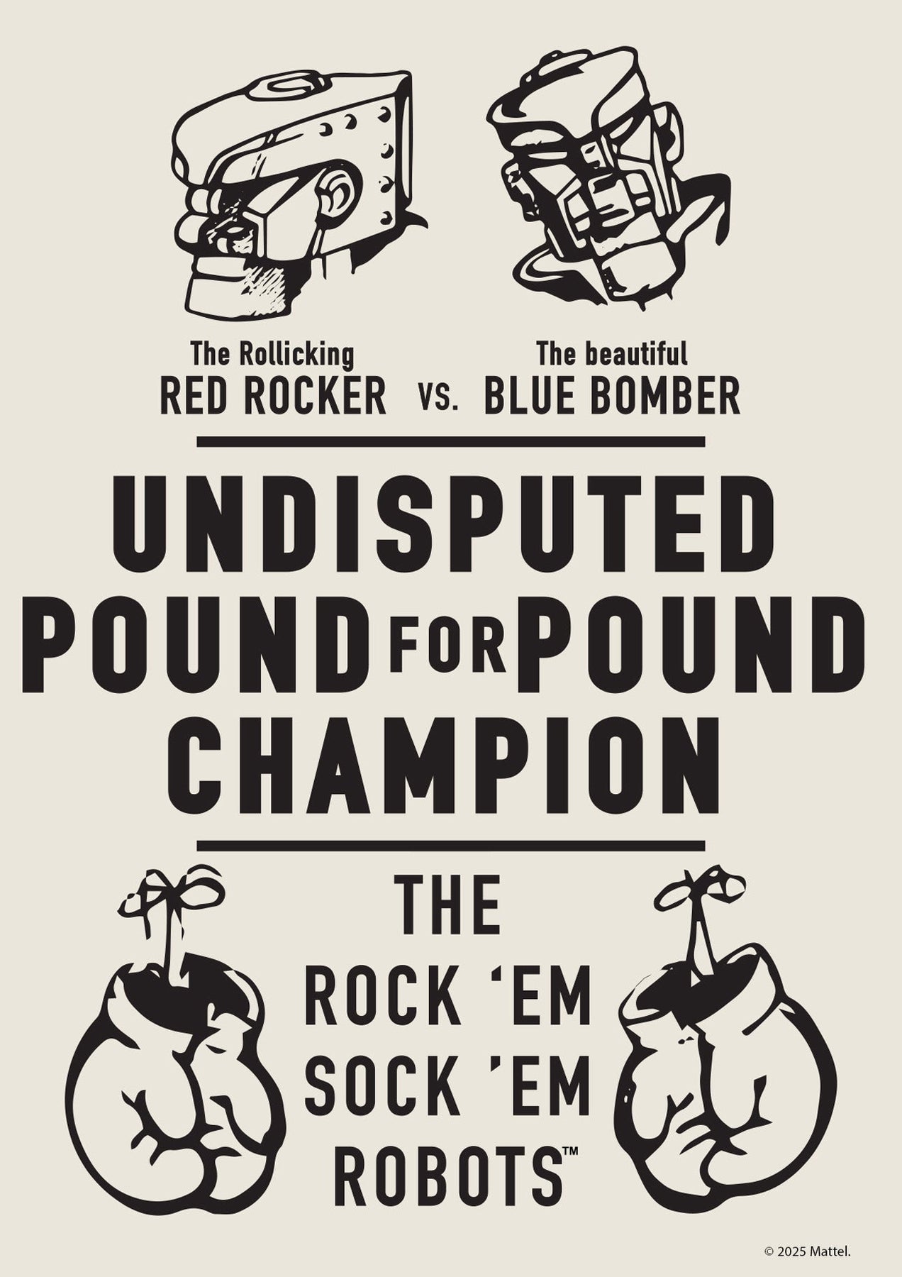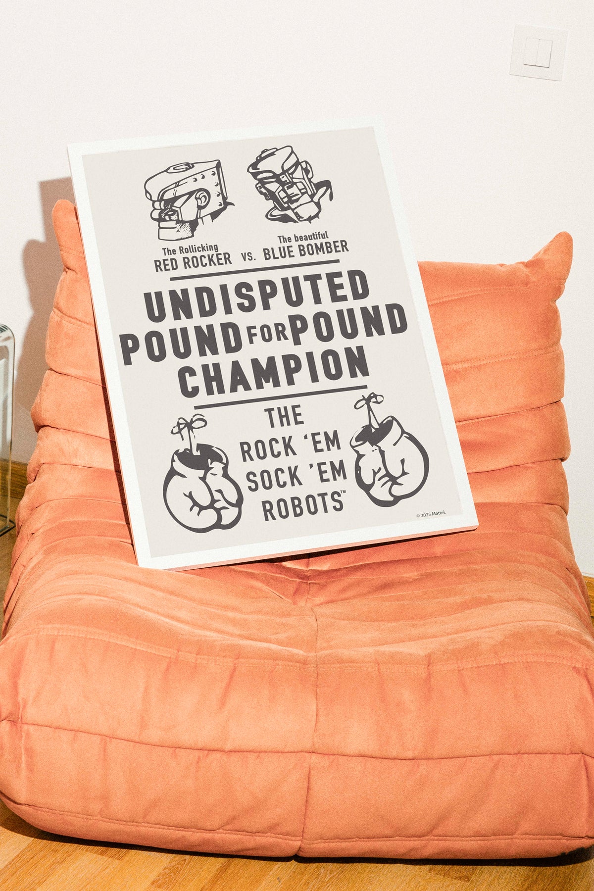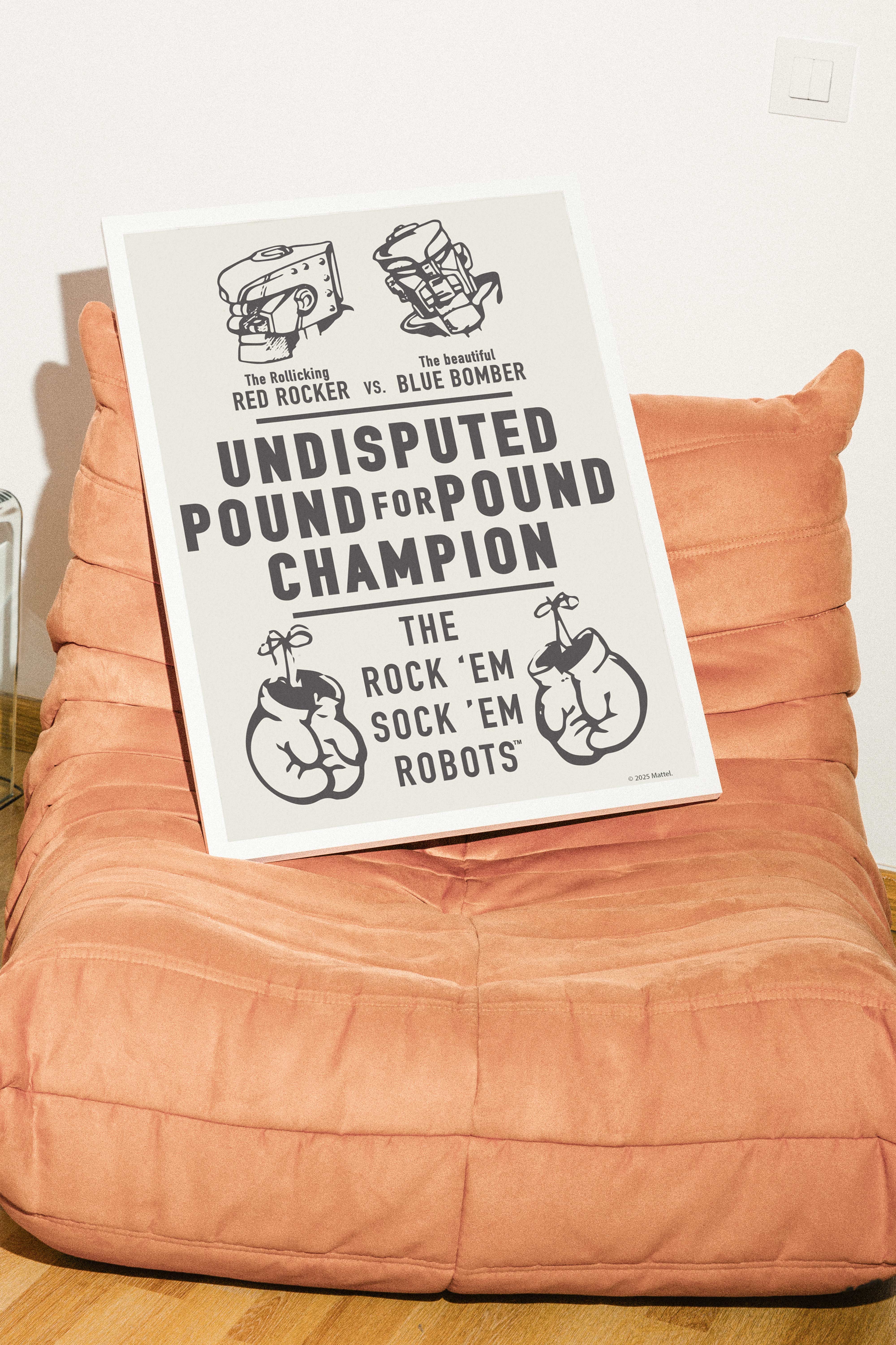 Bring a playful punch to your space with the Undisputed Pound for Pound Champion Wall Art featuring the iconic Rock Em Robots. This vintage-style print from Mattel captures the fun nostalgia of childhood battles, making it a knockout addition to any room. Perfect for fans of retro toys or anyone ready to declare their walls the ultimate champions!
