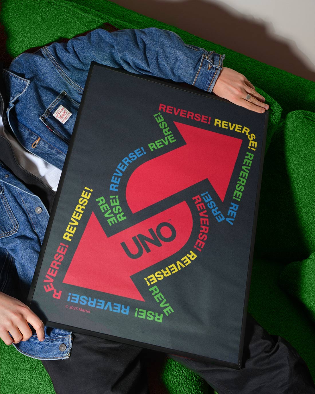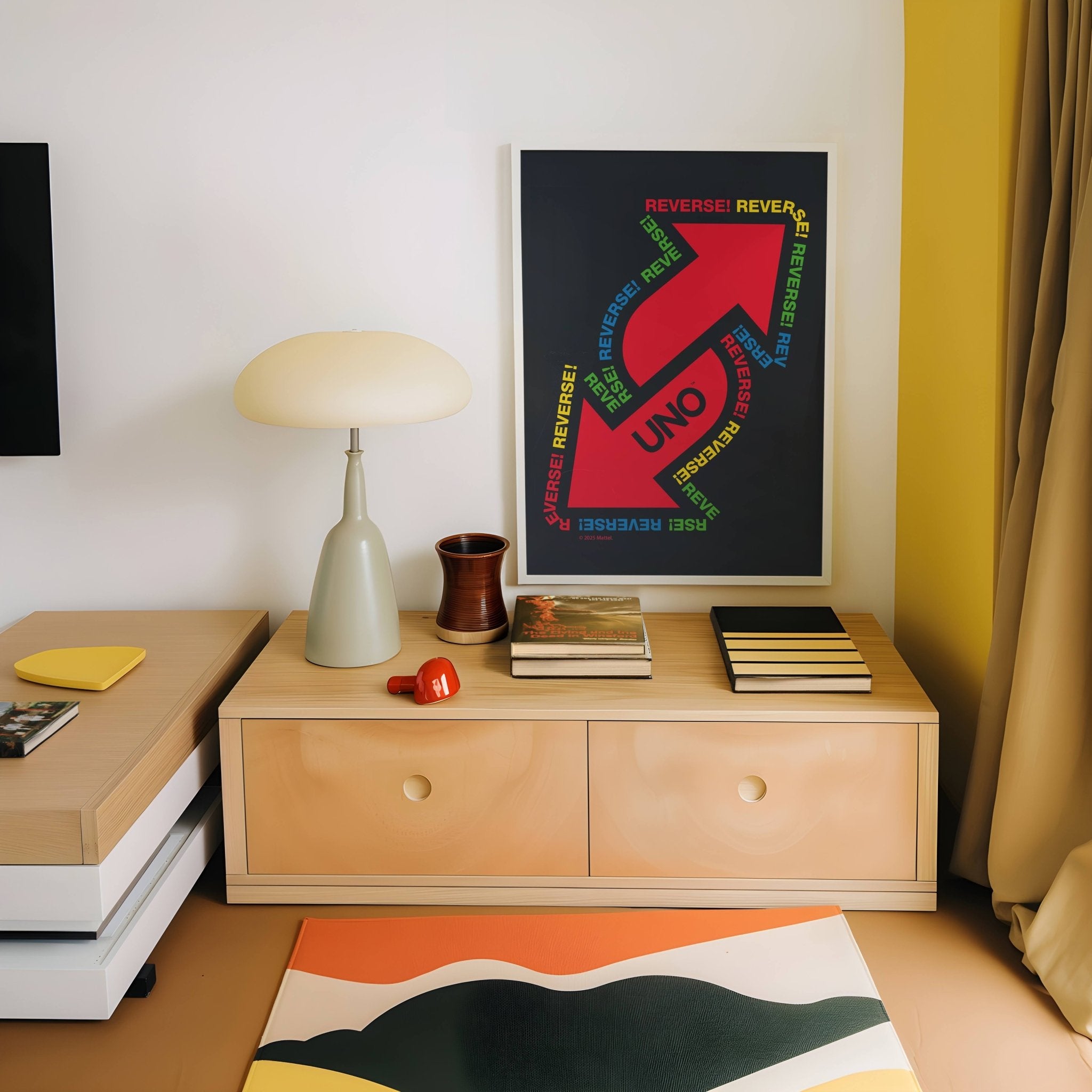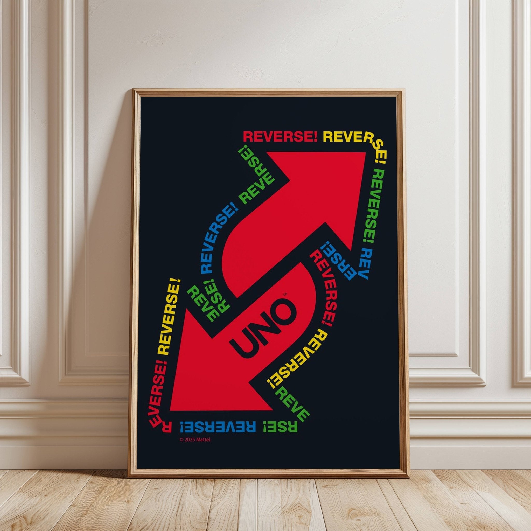 Add a bold twist to your space with the Uno Black Reversed Wall Art Print. Its striking black design flipped on its head brings a playful edge to any room, making it a perfect conversation starter. Lightweight and easy to hang, this art piece effortlessly transforms your walls with a touch of unexpected style from the Mattel range.