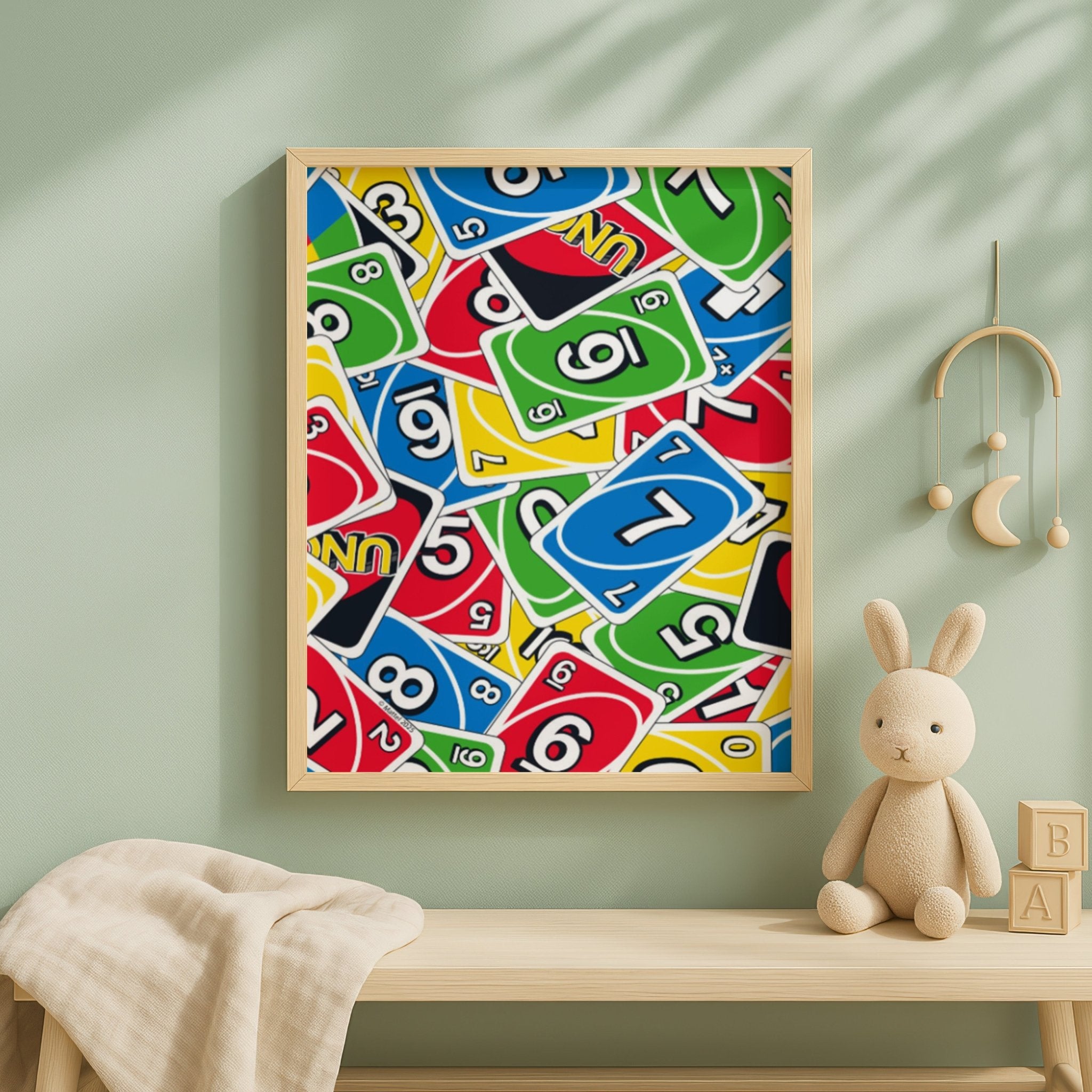 Add a splash of fun and color to your space with the Uno Coloured Stacked Cards Portrait Print. This vibrant artwork playfully layers bright, stacked cards in a portrait style, perfect for brightening up any room with a pop of personality. Ideal for game lovers or anyone who enjoys a quirky twist on classic design, it’s a cheerful conversation starter that brings joy to your walls.