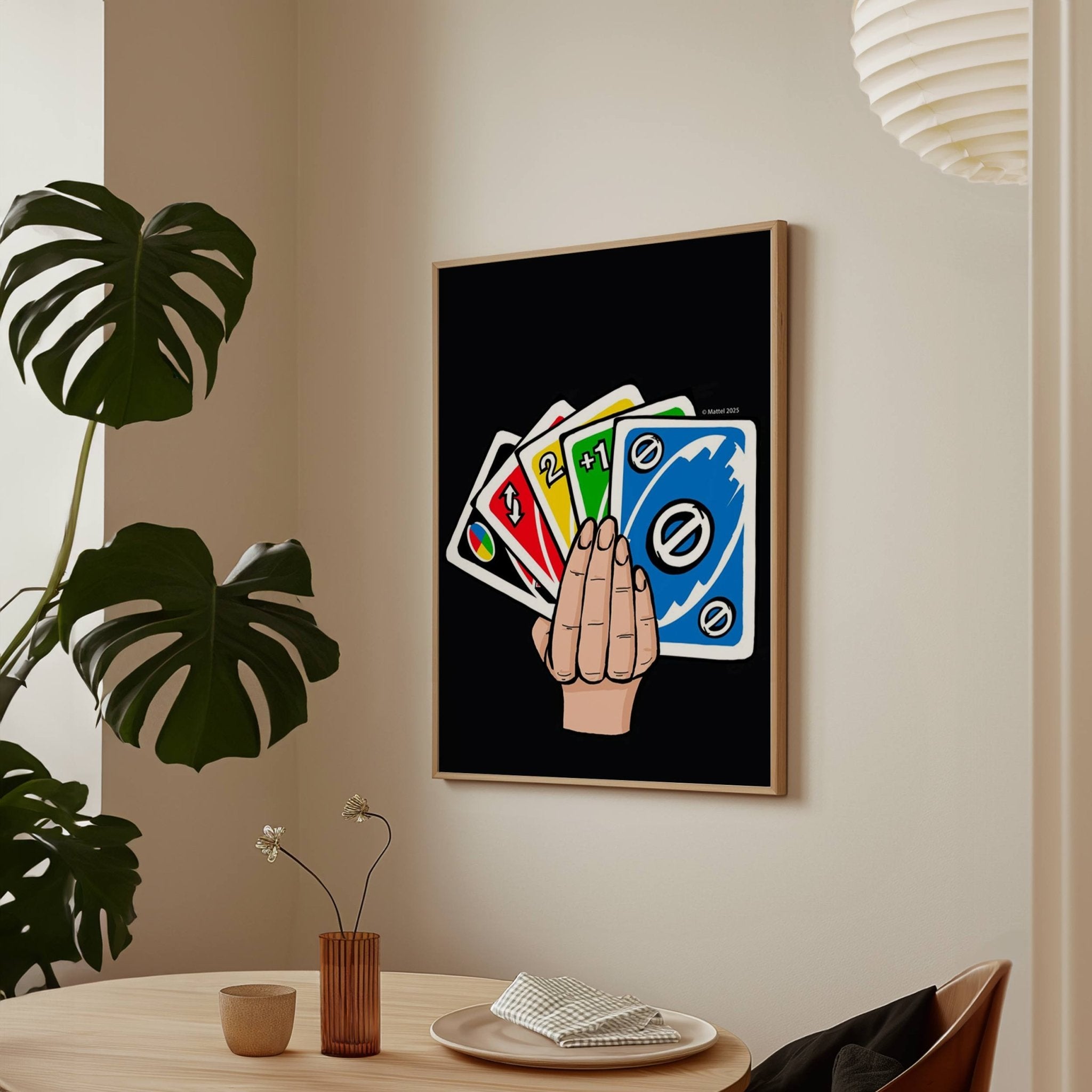 Add a splash of fun to your game night space with the Uno Hand Wall Art Print. Featuring vibrant colors and iconic cards, this playful print captures the excitement of the classic game. Perfect for game rooms or any playful corner, it brings energy and nostalgia to your walls.