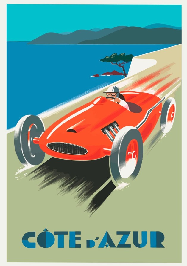Capture the allure of the French Riviera with this striking vintage-style racing poster. Featuring a bold red sports car speeding along a scenic coastal road, the design evokes the golden age of motorsport and Mediterranean glamour. The iconic "Côte d'Azur" text anchors the composition, transporting viewers to sun-drenched shores and thrilling automotive heritage. Perfect for adding sophisticated European flair to any room, this poster combines nostalgic charm with timeless aesthetic appeal.