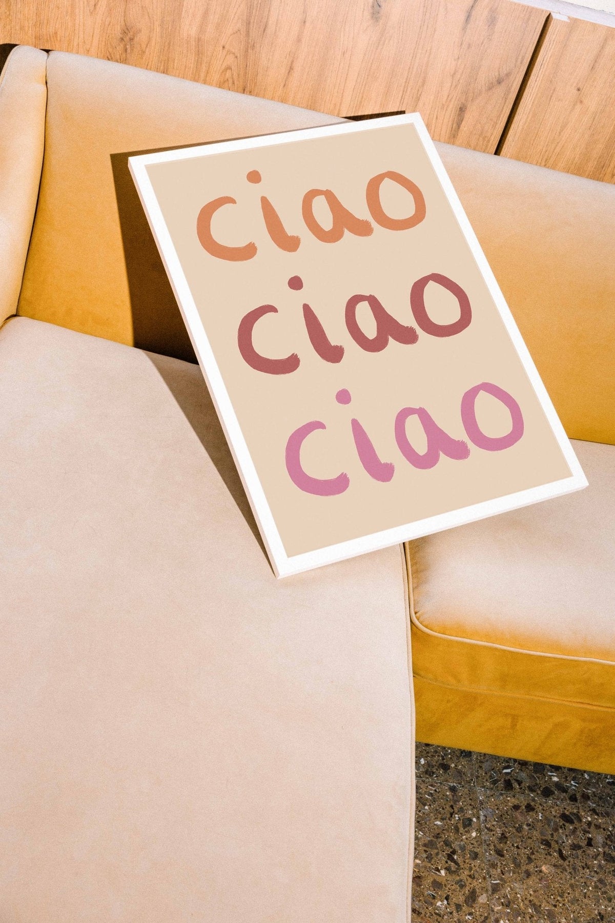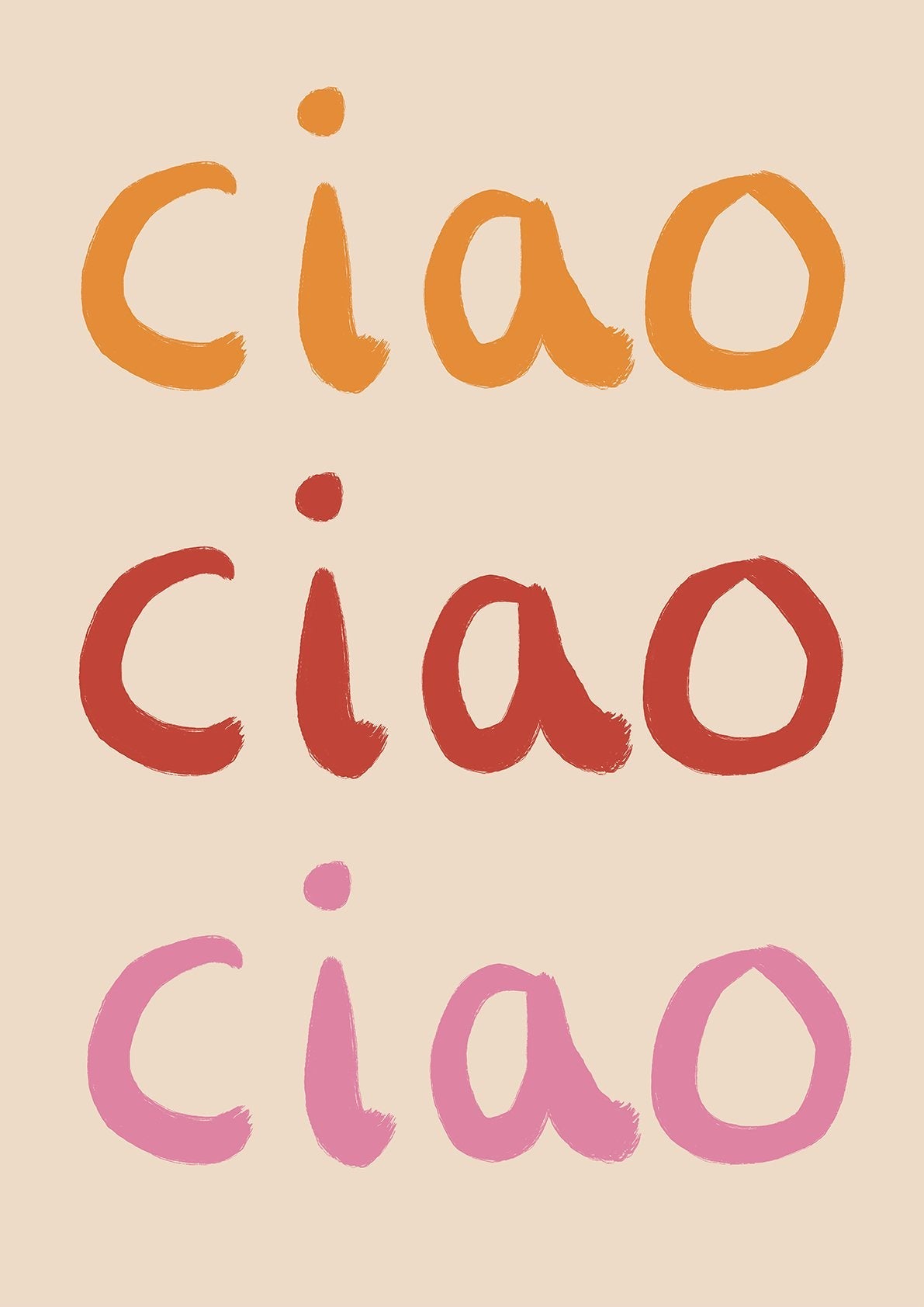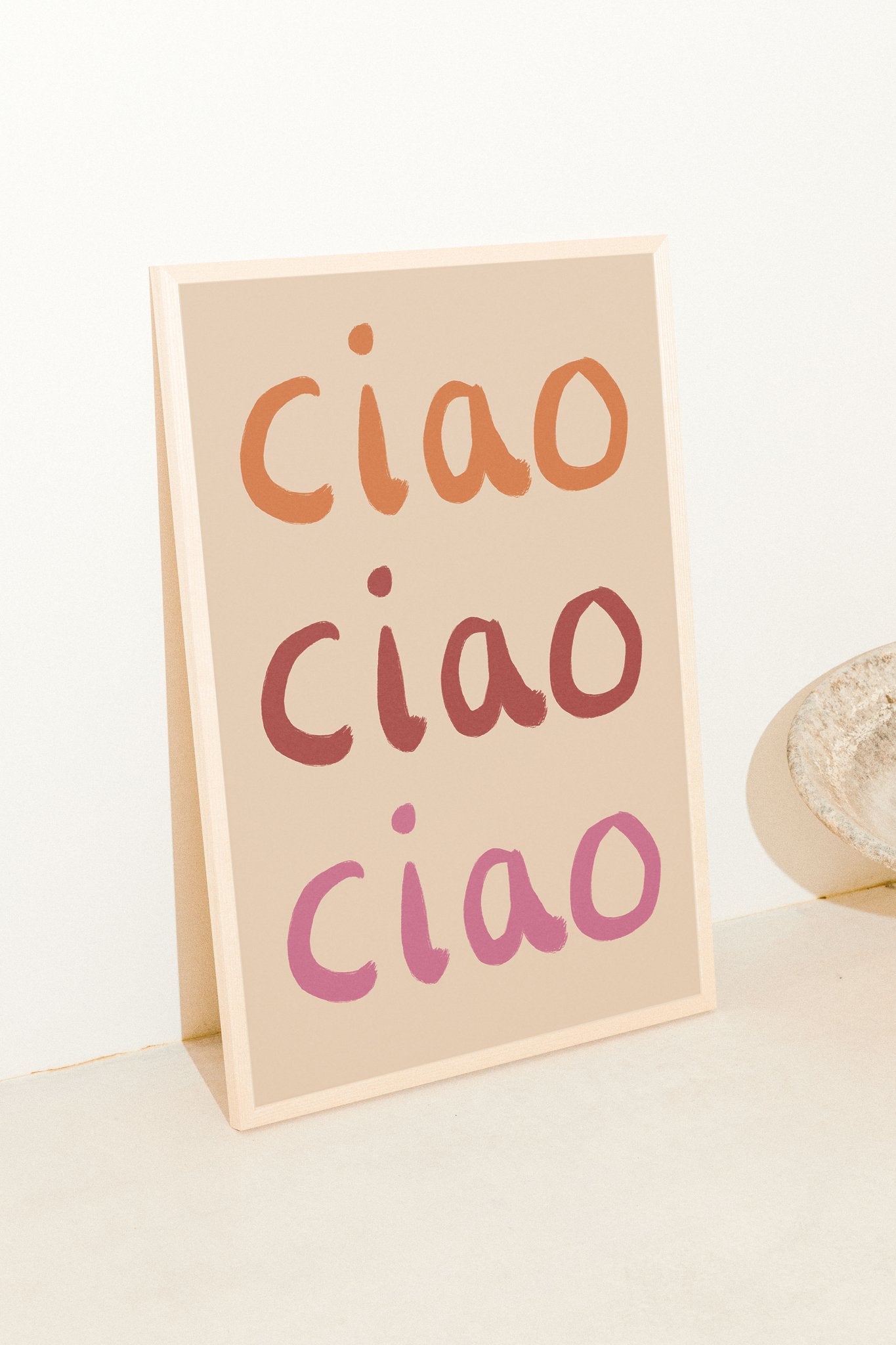 Experience the fun and versatility of 3 Ciao by Lucia Sankovic. Perfect for your kitchen, living room, dining room, study, gallery wall, or hallway, this piece adds a touch of charm to any space.