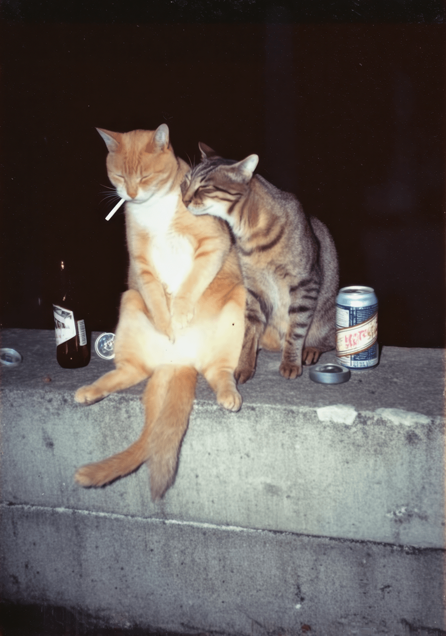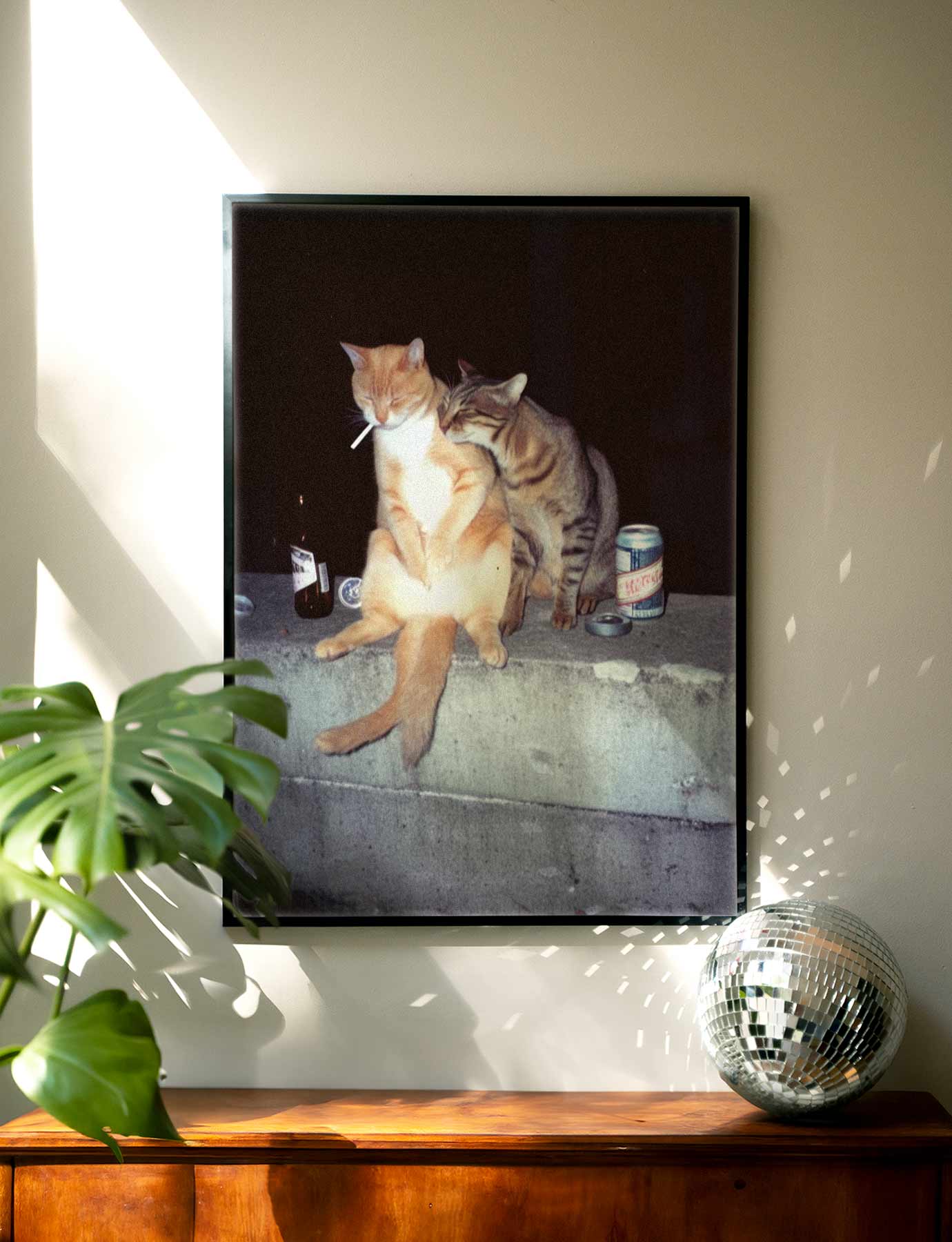 Discover the quirky charm of Feral After Dark Whisky Whiskers, where cheeky cats unwind in a surreal alleyway scene. This playful design captures their laid-back antics—sipping whisky, relaxing, and embracing a delightfully hung-over vibe. Perfect for fans of offbeat humor and whimsical feline fun!