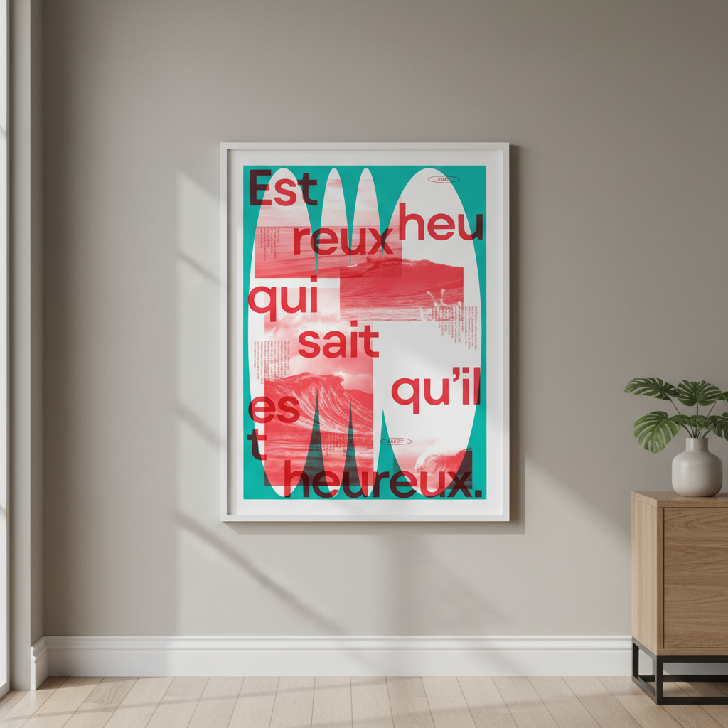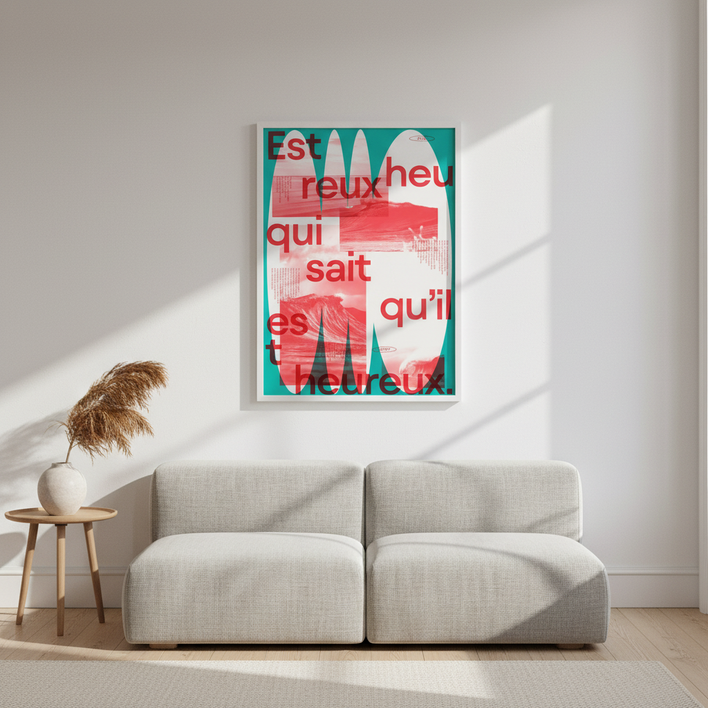 Discover the whimsical world of Heureux by Jérôme Bizien, where playful abstract shapes dance across a stunning teal canvas. This text-based design brings contemporary flair to any space, blending artistic expression with modern aesthetics. Perfect for adding personality and visual interest to your walls, this piece celebrates creativity with its bold colour palette and dynamic composition. Transform your room into a gallery of joy and imagination.