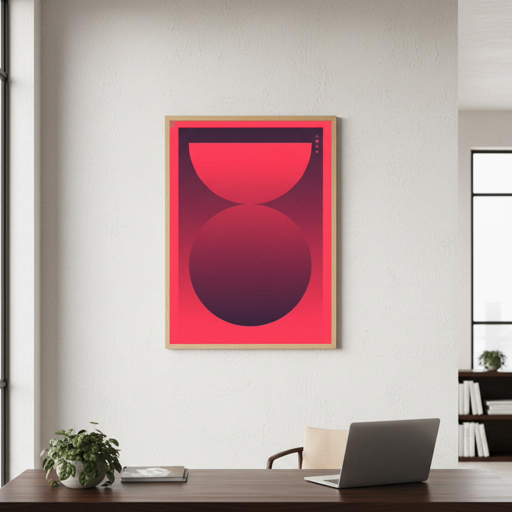 An enchanting hourglass artwork that plays with time itself! This striking piece features a simplified, modern design in rich reds and purples that dance across a coordinating background. Perfect for adding a touch of whimsy and sophistication to any room, "Unseen Too" invites you to pause and ponder life's fleeting moments—all while looking absolutely gorgeous on your wall.