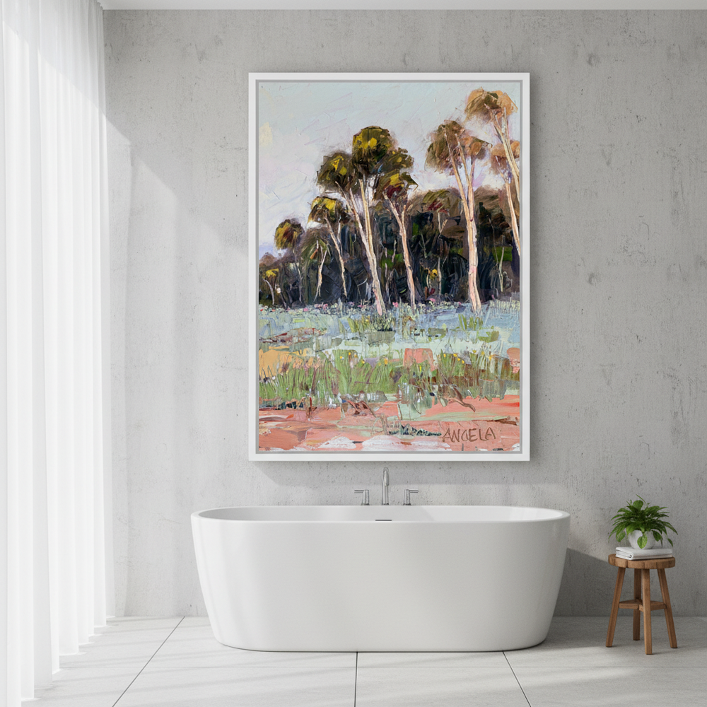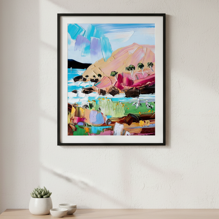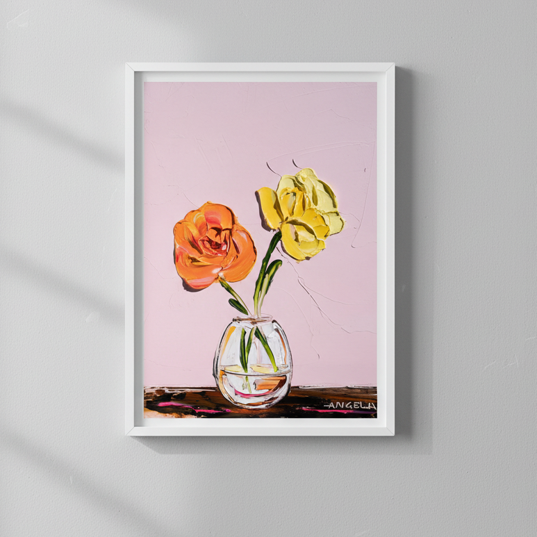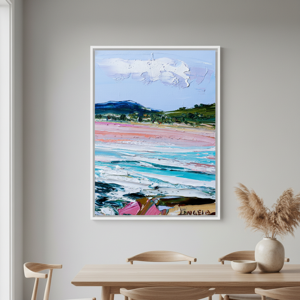 Angie’s passion for art began early, inspired by her grandfather, a landscape oil painter. She creates expressive, joyful works that focus on texture, colour, and shape