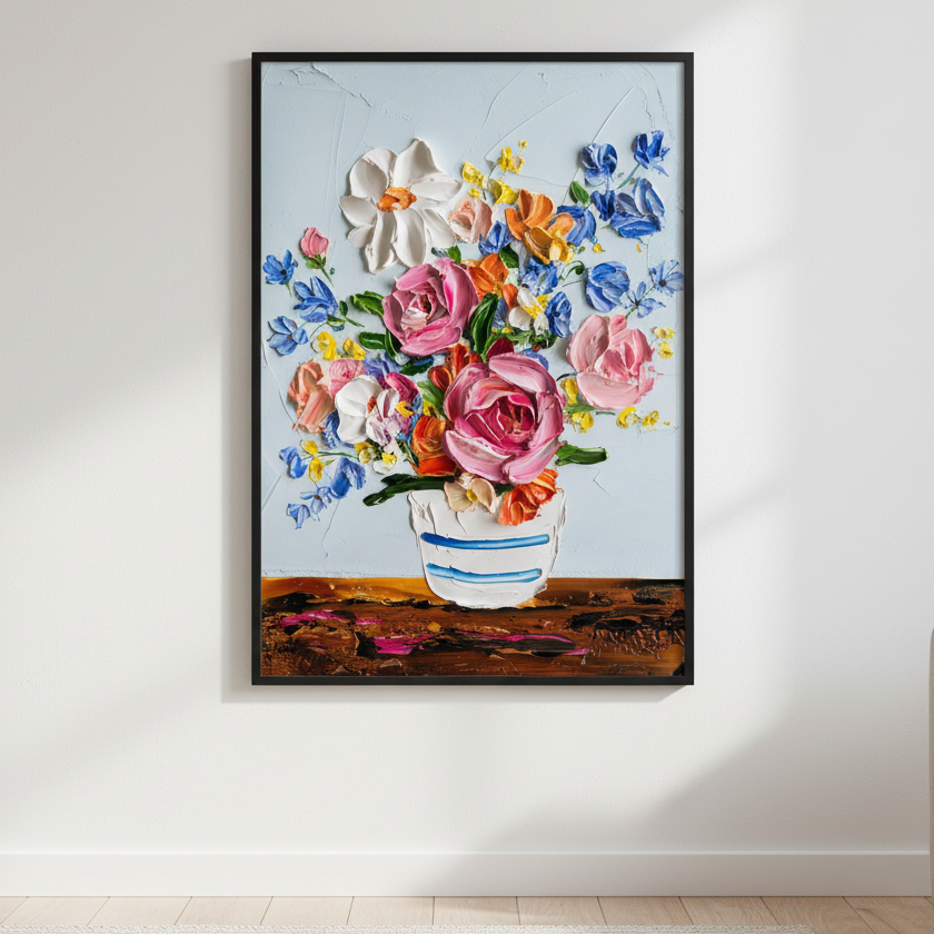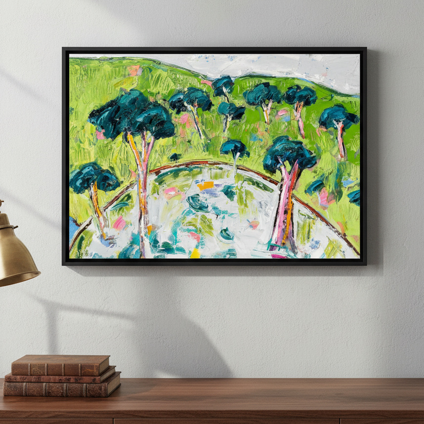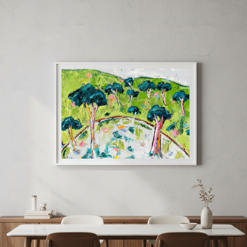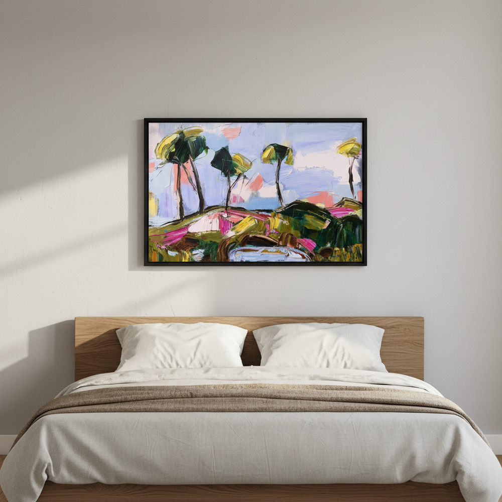 Angie’s passion for art began early, inspired by her grandfather, a landscape oil painter. She creates expressive, joyful works that focus on texture, colour, and shape