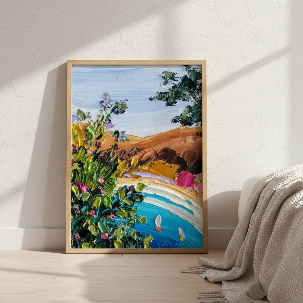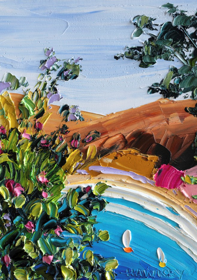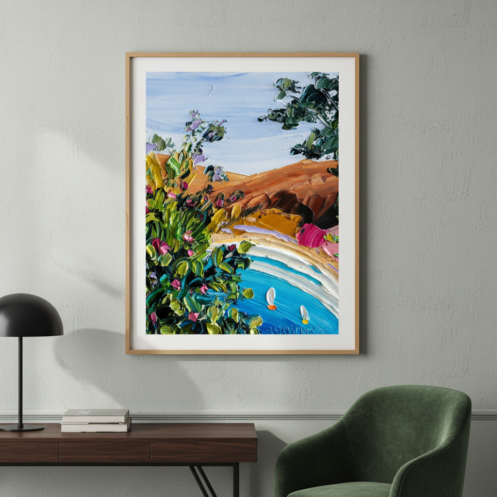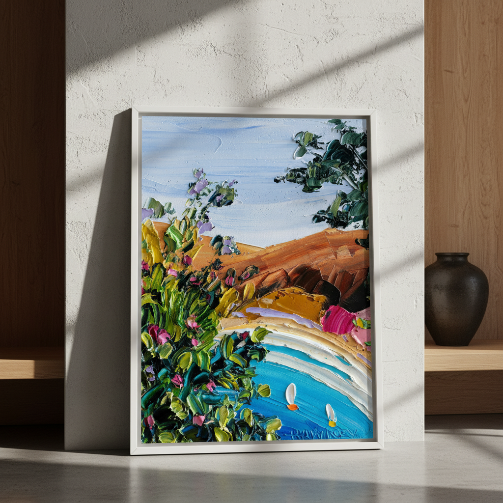 Seeing Pink by Angela Hawkey is a vibrant abstract landscape that reimagines nature through bold colour and expressive brushwork. This striking composition layers florals, verdant trees, and a luminous pool into a dynamic composition that captures the essence of natural beauty rather than its literal form. The interplay of warm and cool tones creates visual depth, inviting viewers to experience the landscape as emotion and energy. Ideal for contemporary interiors seeking artwork with personality and artistic sophistication.