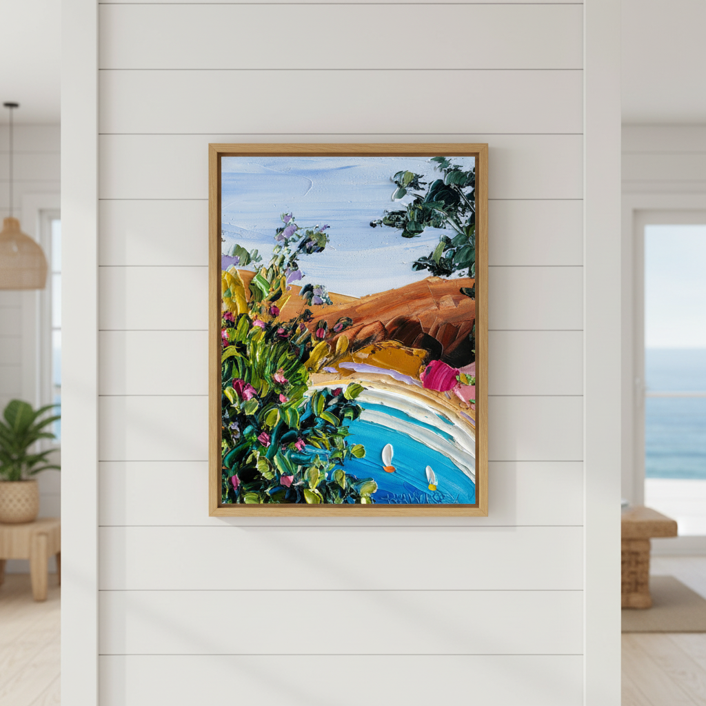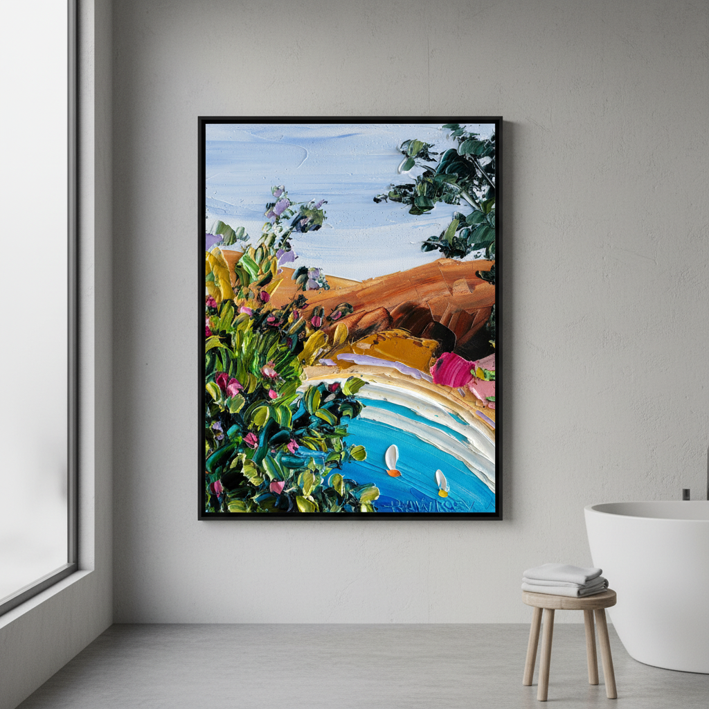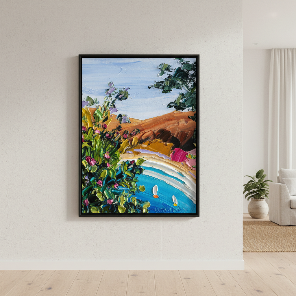 Seeing Pink by Angela Hawkey is a vibrant abstract landscape that reimagines nature through bold colour and expressive brushwork. This striking composition layers florals, verdant trees, and a luminous pool into a dynamic composition that captures the essence of natural beauty rather than its literal form. The interplay of warm and cool tones creates visual depth, inviting viewers to experience the landscape as emotion and energy. Ideal for contemporary interiors seeking artwork with personality and artistic sophistication.